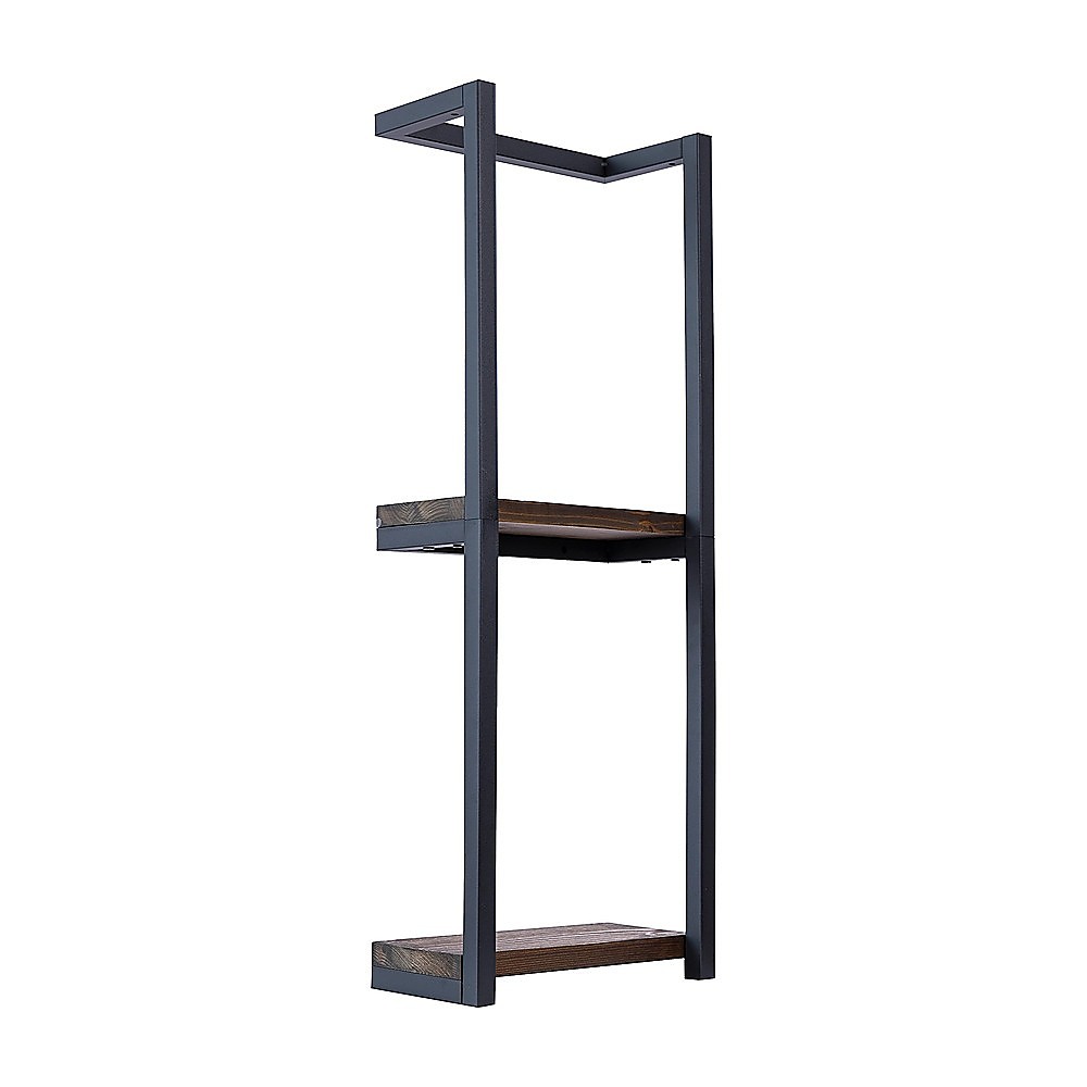 This stylish bathroom towel storage rack with wooden shelves offers an elegant and functional solution for organizing towels in limited space. Its wall-mounted design helps create a neat and cozy bathroom environment while providing easy access to folded towels. The combination of wood panels and metal tubes adds a touch of sophistication to your bathroom decor.