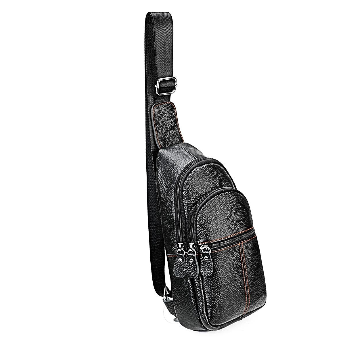 Stylish Genuine Leather Crossbody Chest Bag For Men And Women Functional And Versatile Design - Black
