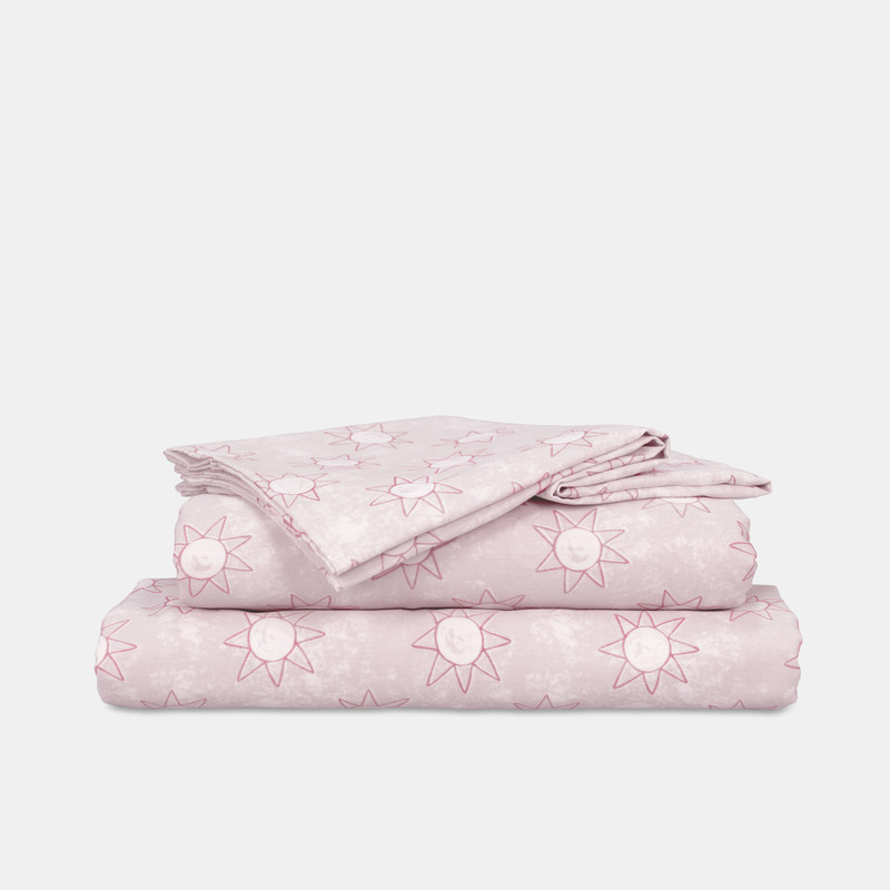 The Suns Sheet Set in pastel blue is designed to add a soft and calming touch to your child’s bedroom decor. Its gentle color complements various themes and creates a cozy sleeping environment. Perfect for a variety of room styles, this sheet set offers comfort and style for your little one.