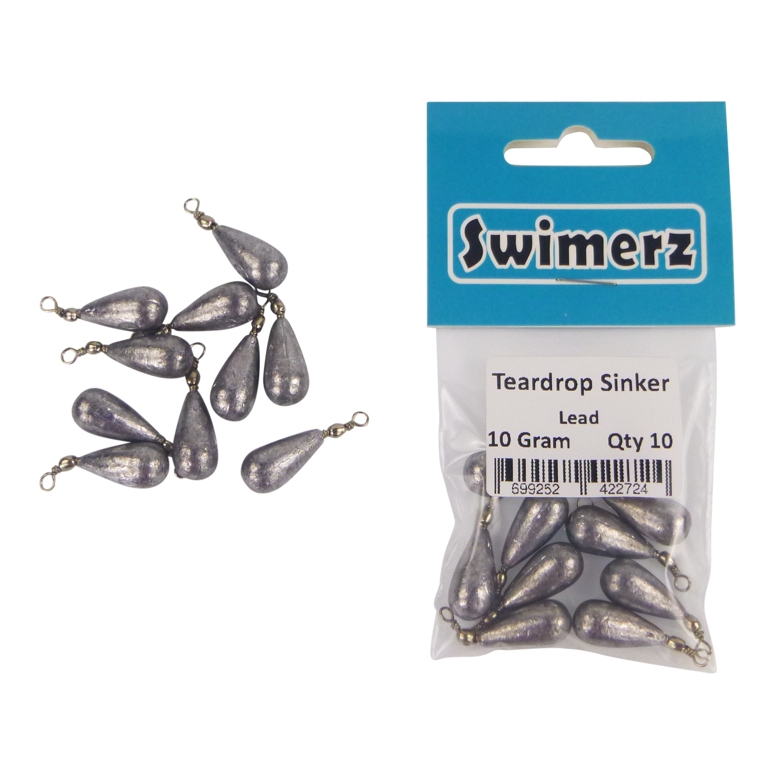Swimerz 10gm Teardrop Sinker, Lead, 10 pack