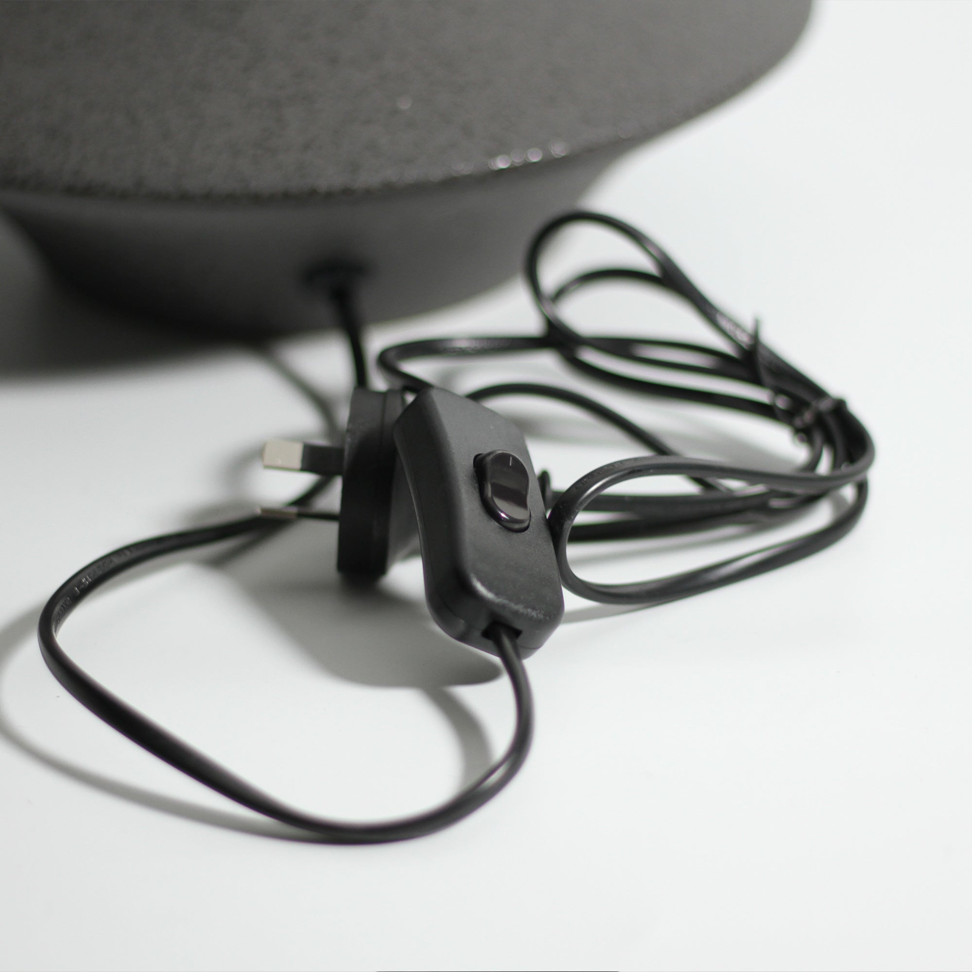 This small table lamp features a sleek, modern design with a matte black ceramic base and a white fabric lampshade. Its minimalist style makes it suitable for various interior decor themes, including contemporary, traditional, and monochrome settings. The lamp provides a functional and stylish lighting solution for bedside tables, study areas, or office spaces.