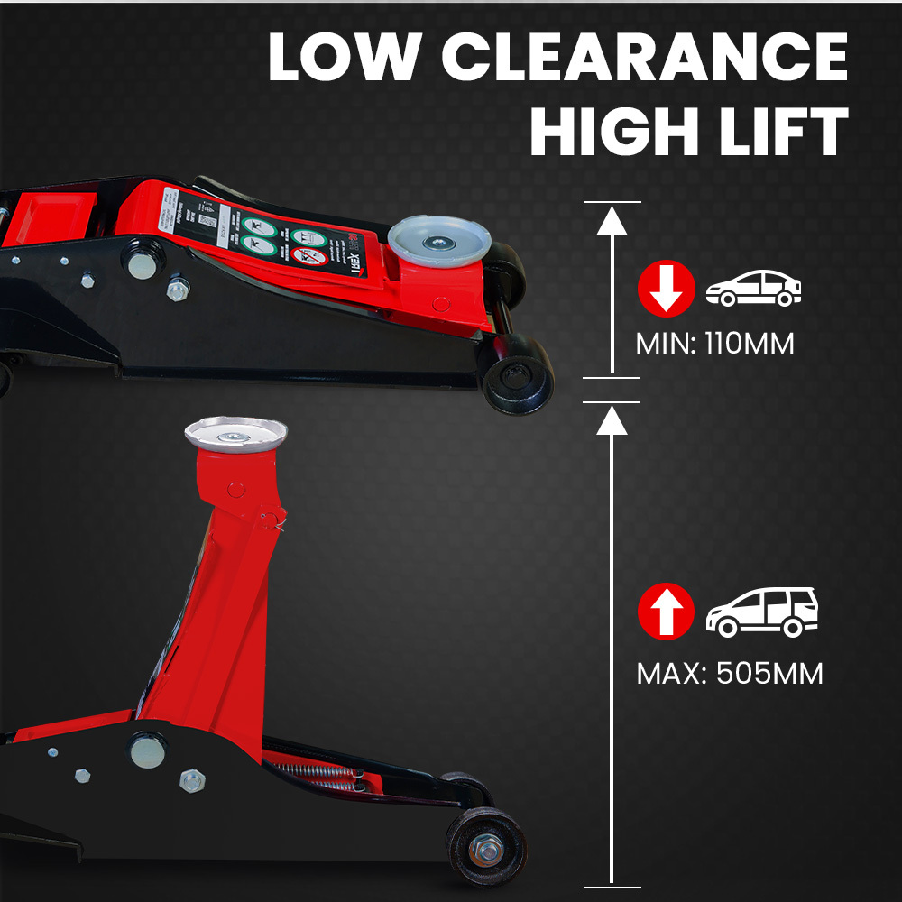T-REX 3000KG Hydraulic Trolley Floor Jack, High Lift, Dual Pump, Quick Release Handle