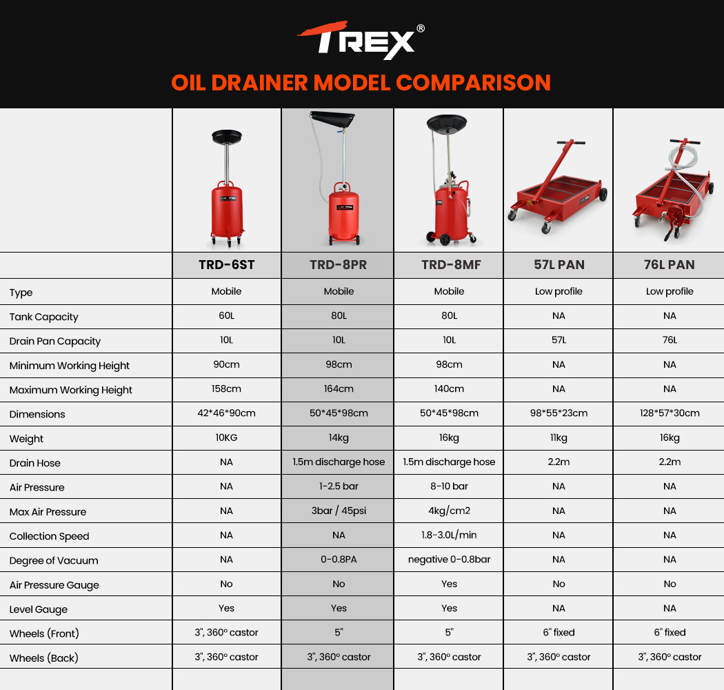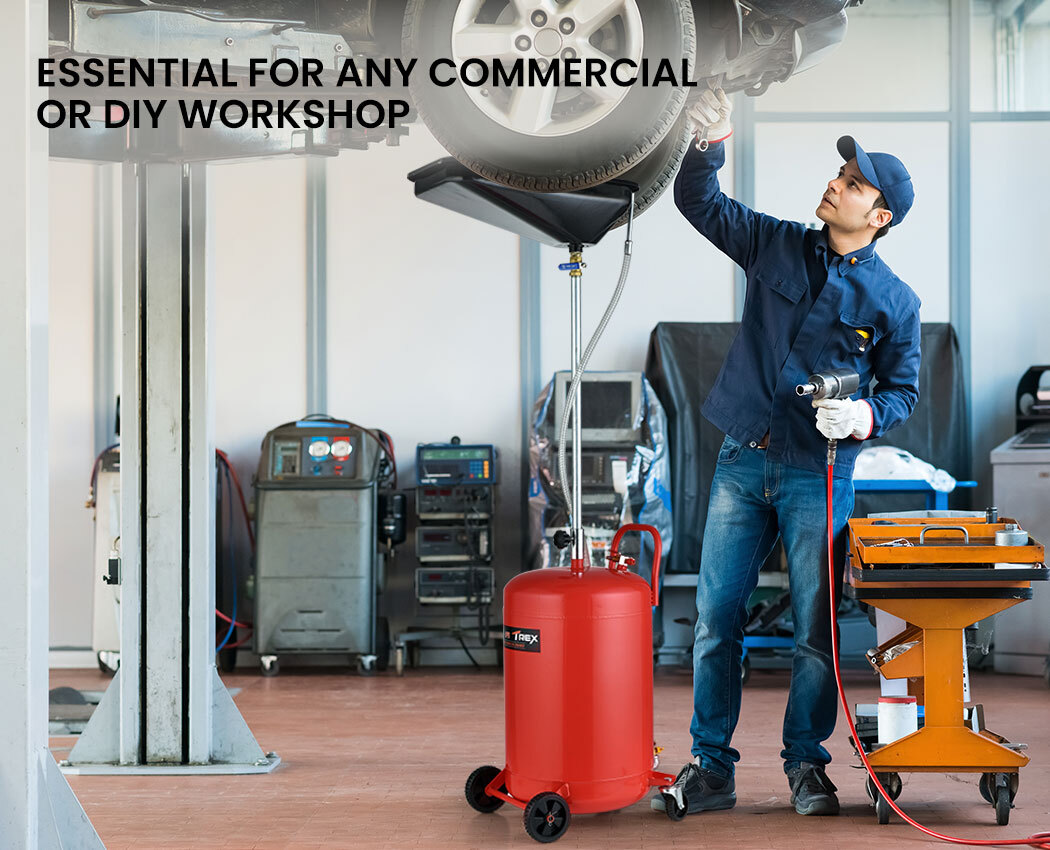 T-REX 80L Mobile Waste Oil Drainer, Telescopic, with Air Compressor Fitting, for Workshop