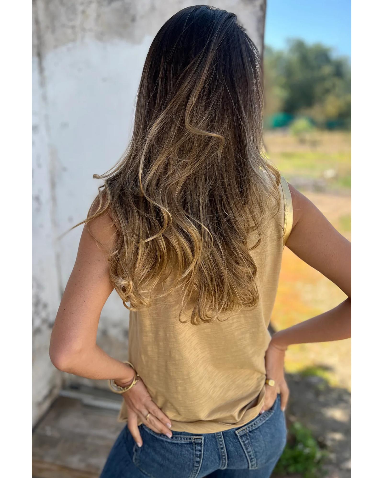 Tan Metallic Sheen Edge Scoop Neck Tank Top – XL