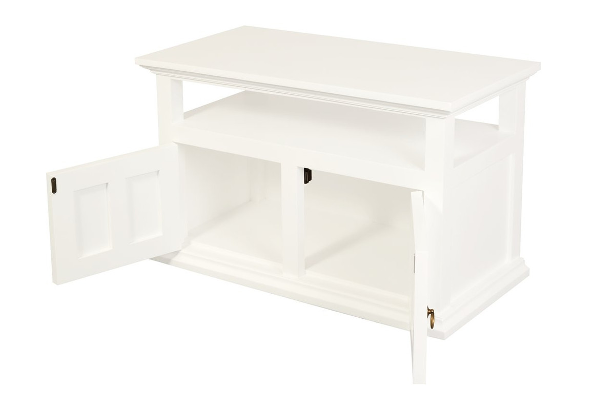 This TV stand is crafted from solid mahogany timber, providing a warm and inviting atmosphere for your living space. Its design offers a spacious surface suitable for televisions and media devices, making it a practical addition to various room sizes. The stand features a classic style with two doors, combining functionality with rustic charm. It is available in multiple colors to match different decor styles and preferences.