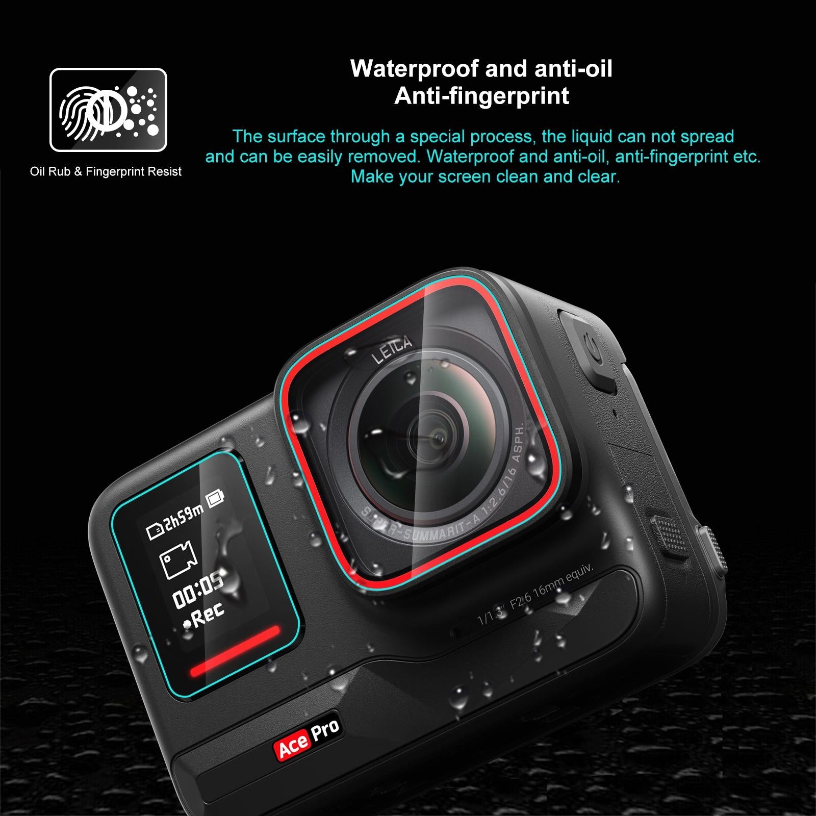 - Scratch protection for the camera lens