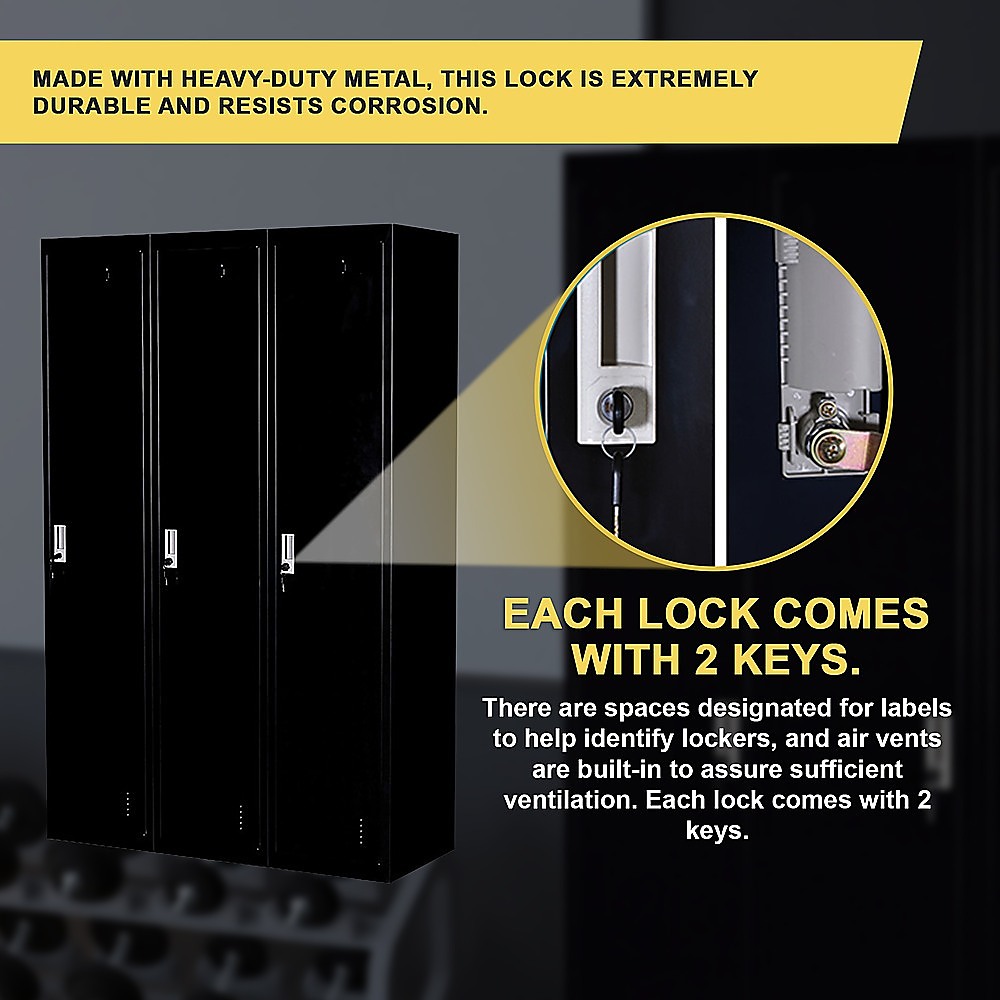 This three-door side-by-side locker is designed for educational institutions and offices requiring spacious and versatile storage solutions. It features multiple compartments with ample room to store various belongings, suitable for both short-term and long-term use. Constructed from durable steel with a powder-coated finish, it offers strength, corrosion resistance, and an attractive appearance. The locker includes built-in ventilation, label spaces for easy identification, and a secure lock-and-key system to ensure privacy and security. Its simple design allows for quick assembly, making it a practical choice for various settings.