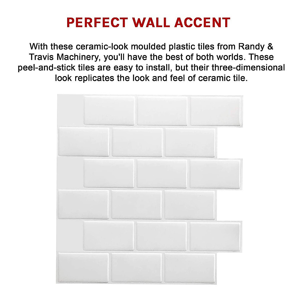 - Design: 3-D subway tile appearance