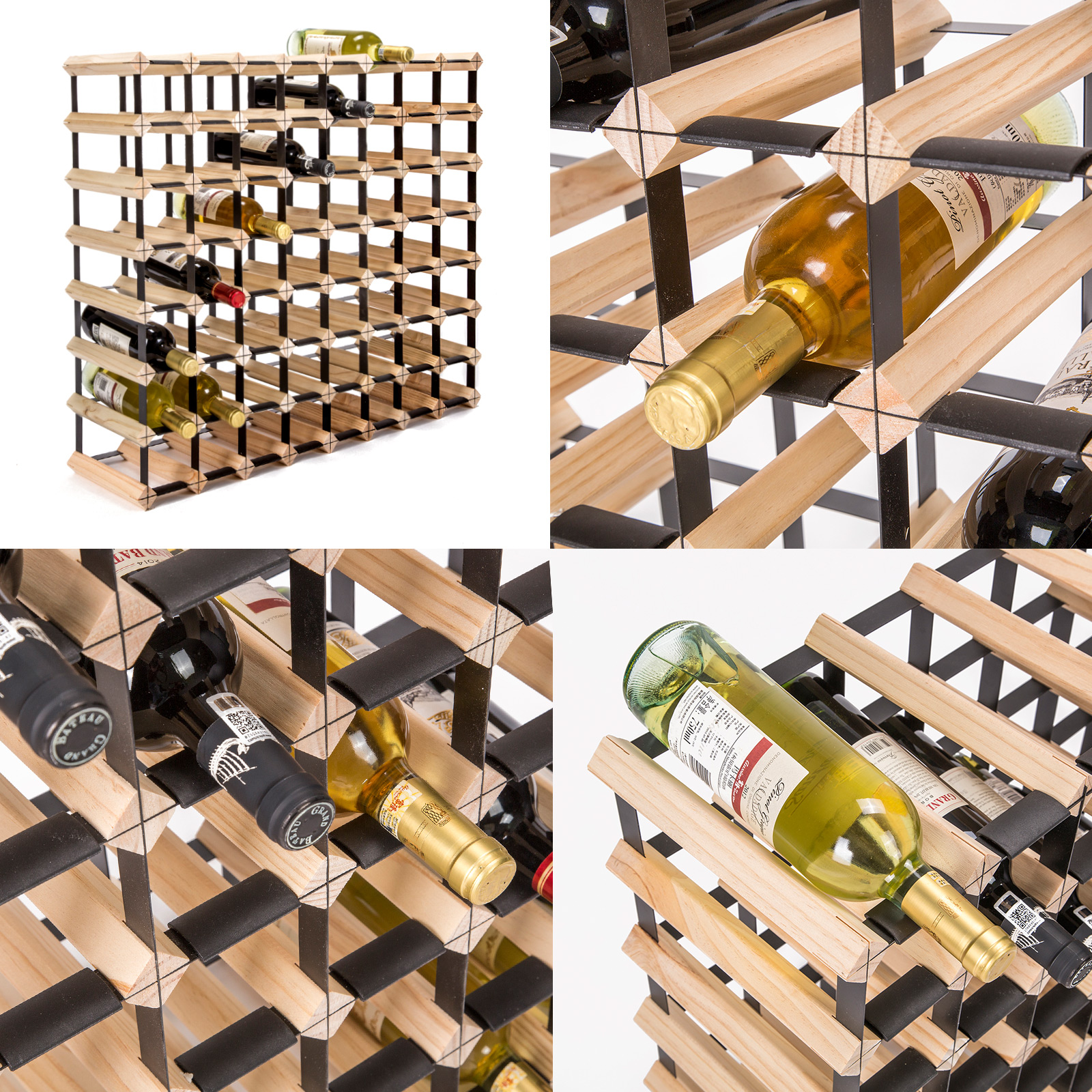 This modern and expandable timber wine rack offers a stylish solution for storing, aging, and displaying your wine collection. Made from high-quality pine wood and durable steel, it provides stable storage while enhancing the aesthetic of any space. Its compact design makes it suitable for various environments, and it can be expanded to accommodate growing collections.