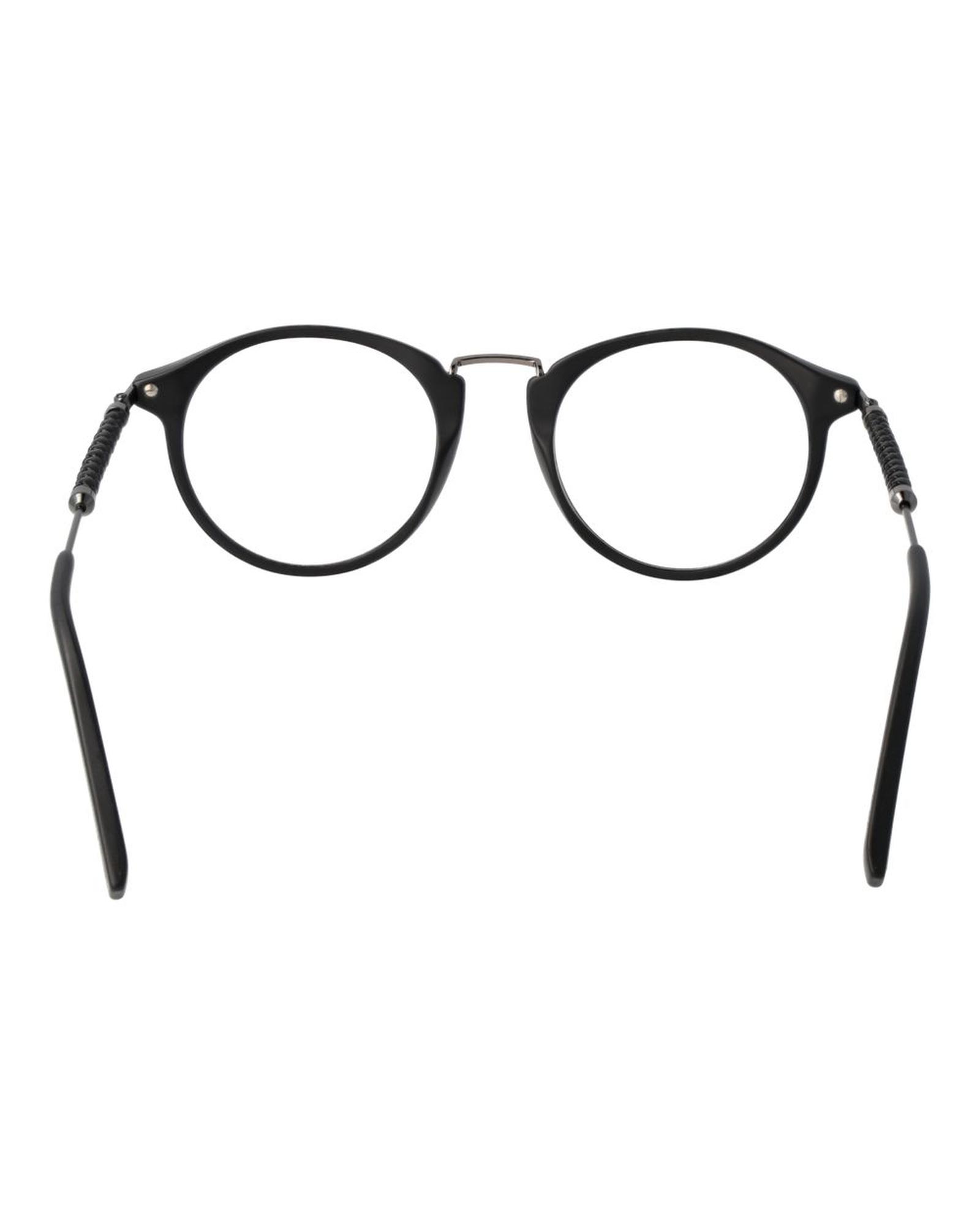 This pair of men’s optical frames features a classic round style with a full rim design. Crafted from durable acetate, the frames are black in color, offering a versatile and timeless look. The lenses are demo glasses made of plastic, suitable for fitting with prescription lenses. Designed for comfort and style, these frames are a practical choice for everyday wear.