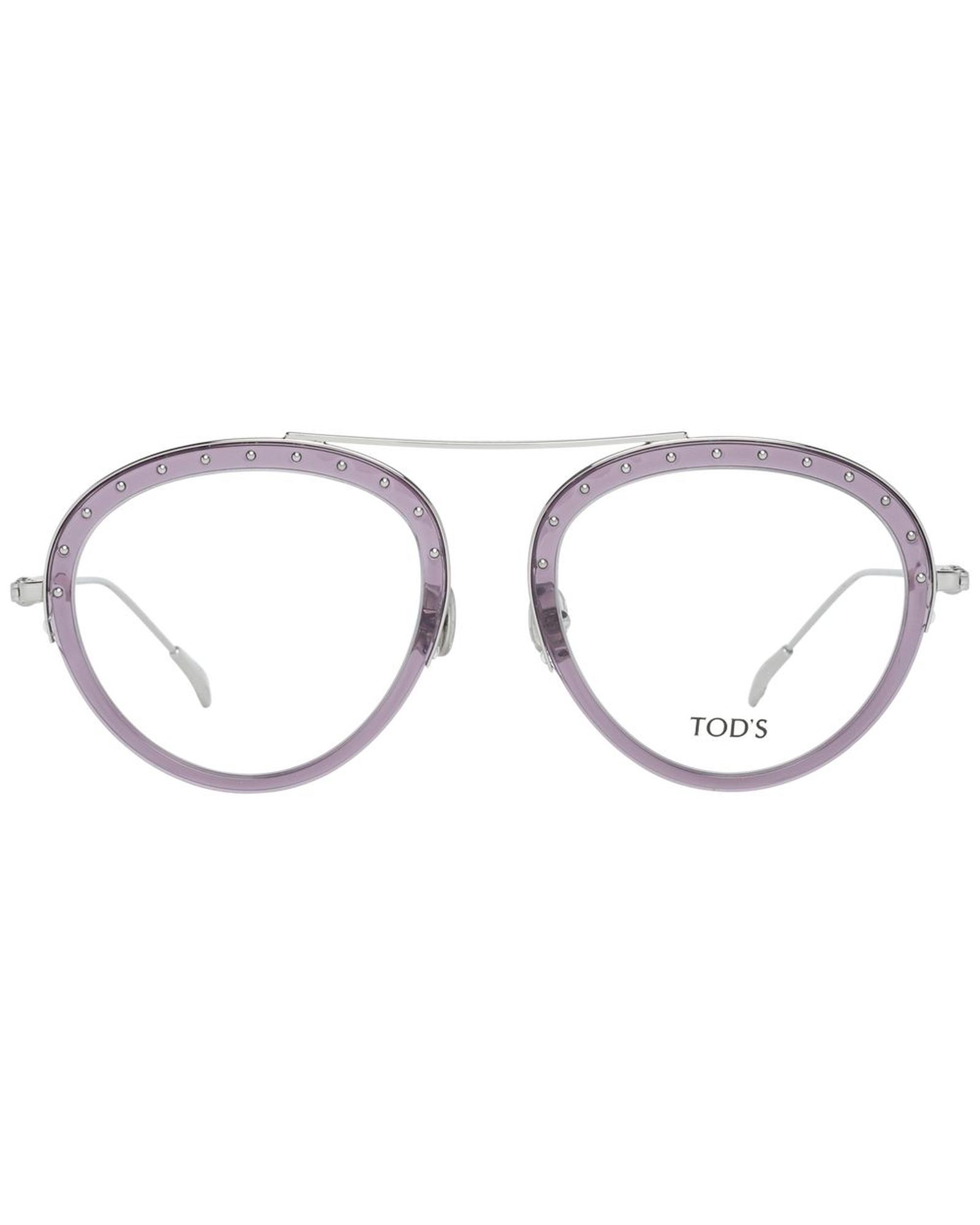This pair of optical frames is designed for women, featuring a stylish round shape with a purple main color and silver accents. Made from a combination of metal and leather, these frames offer a comfortable fit and a fashionable appearance. The lenses are demo glasses made of plastic, suitable for fitting with prescription lenses. The size specifications ensure a proper fit for most users, with detailed measurements provided for the lenses, bridge, and temples.