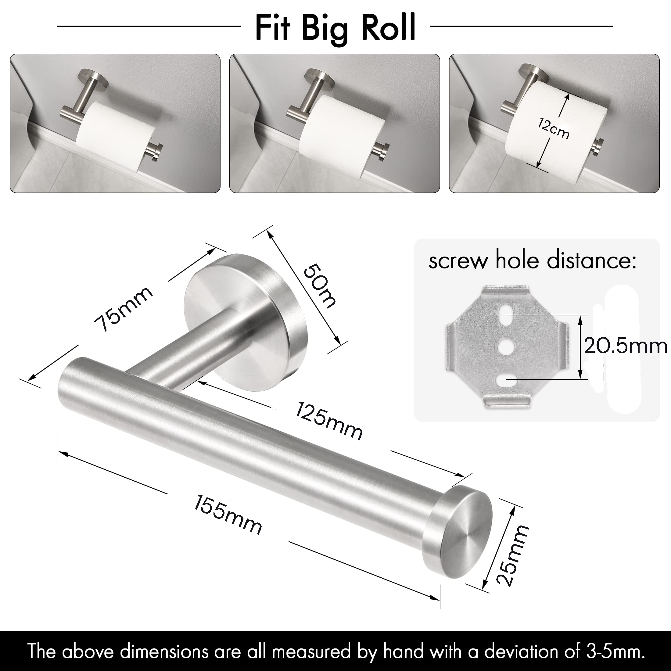 Max. diameter is 12cm. Hold even mega-sized rolls of toilet tissue.