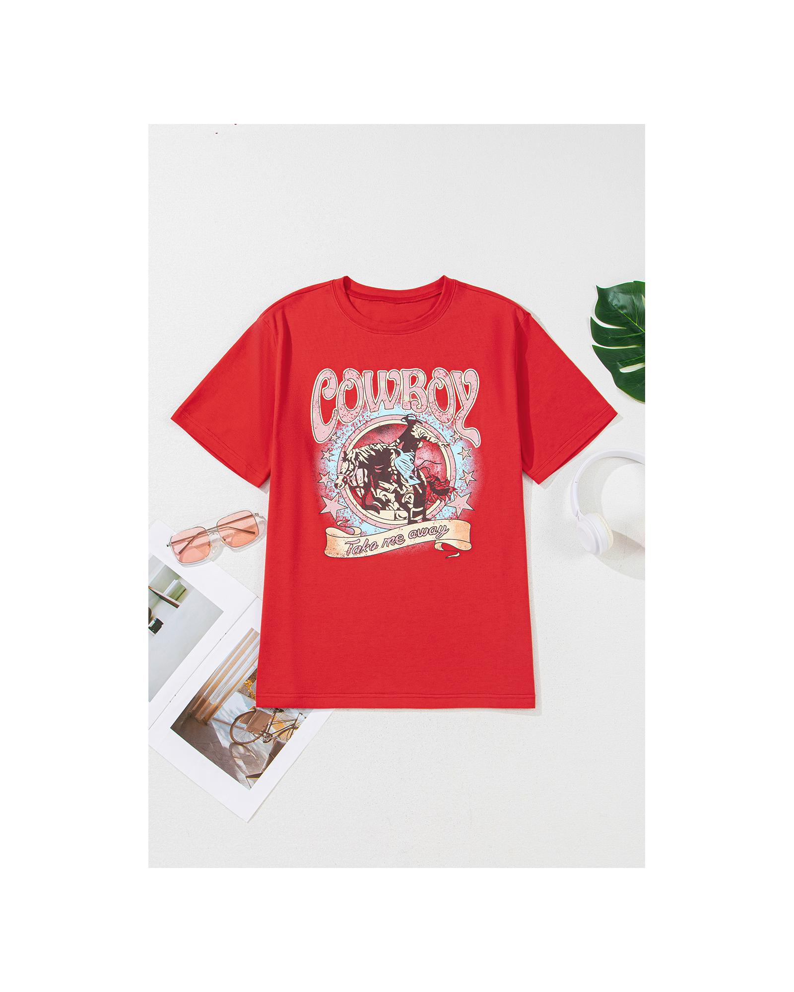 Tomato Red COWBOY Take Me Away Graphic Western Loose Tee – XL
