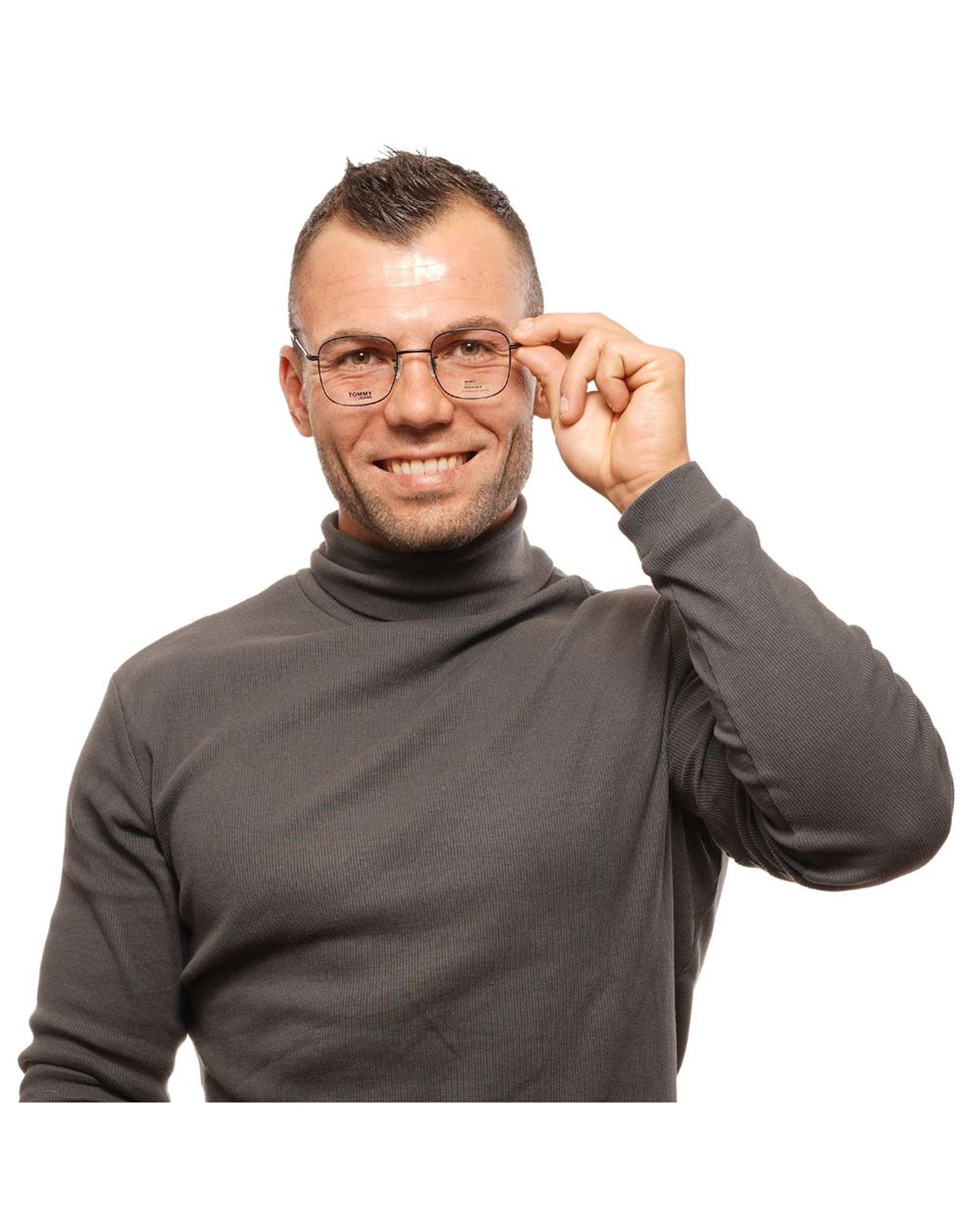 This pair of unisex optical frames features a sleek black design suitable for various styles. Made from a combination of metal and plastic, these square-shaped frames offer durability and comfort. The package includes a branded case for protection and convenience.
