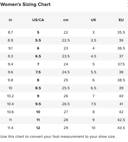 Available in medium width, these shoes run true to size. It is recommended to select your usual size, or a smaller size if you are between sizes, as they will stretch slightly with wear.
