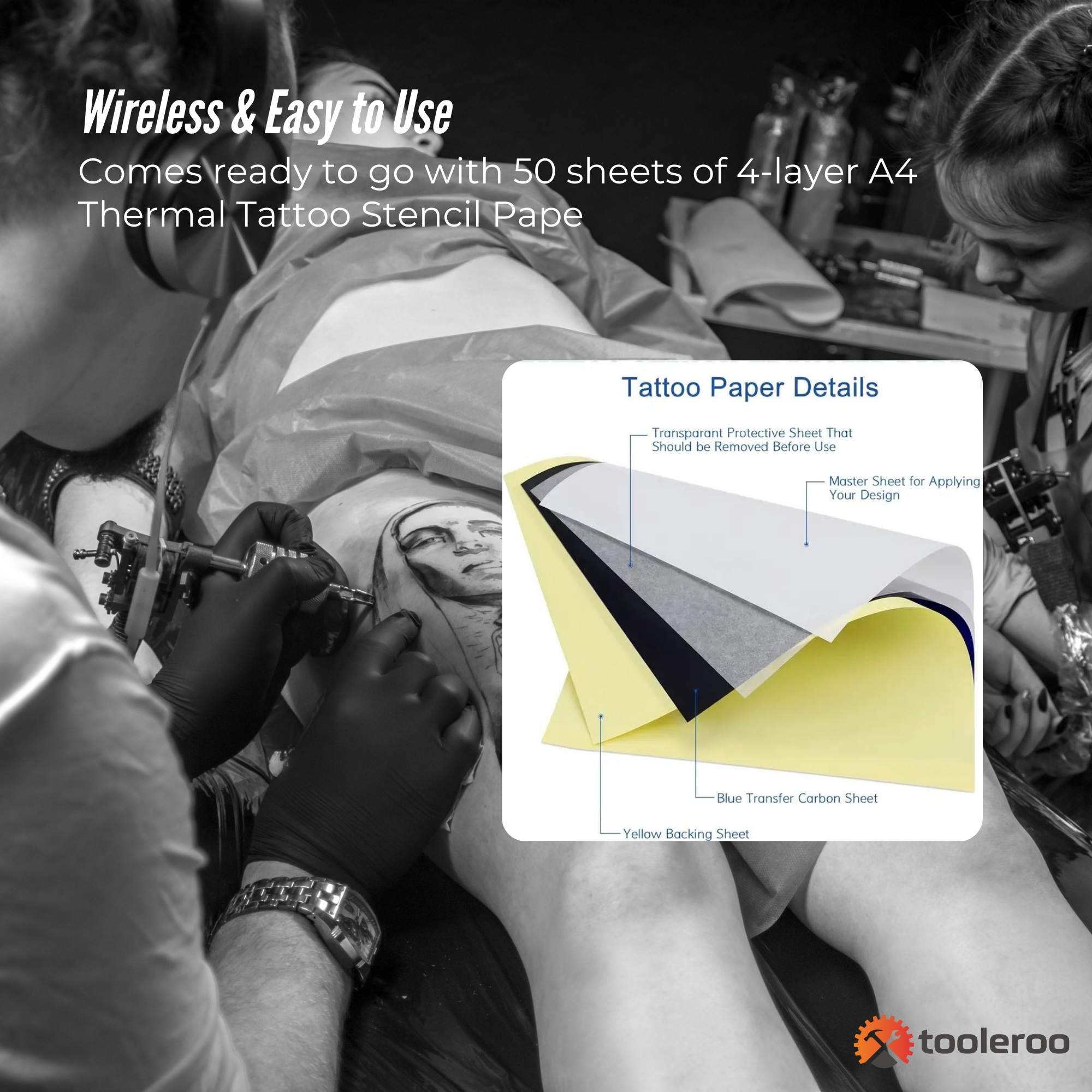 Tooleroo Portable A4 Thermal Printer White + Tattoo Stencil Paper Kit – Wireless