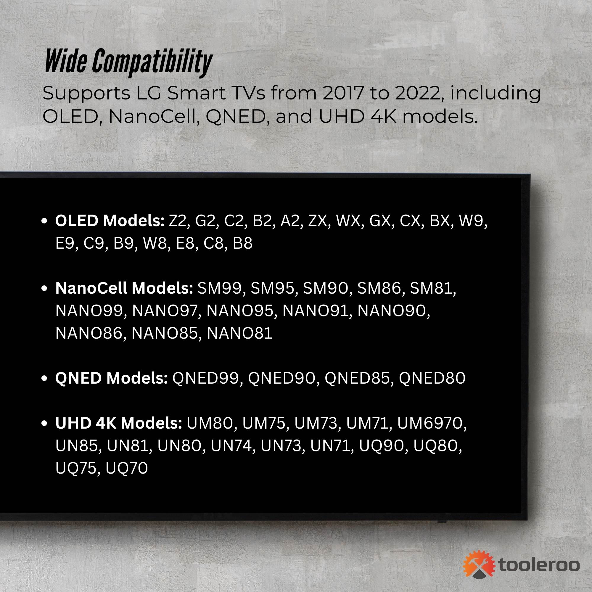- Supports a variety of smart TV models from 2017 to 2022, including OLED, NanoCell, QNED, and UHD 4K series.
