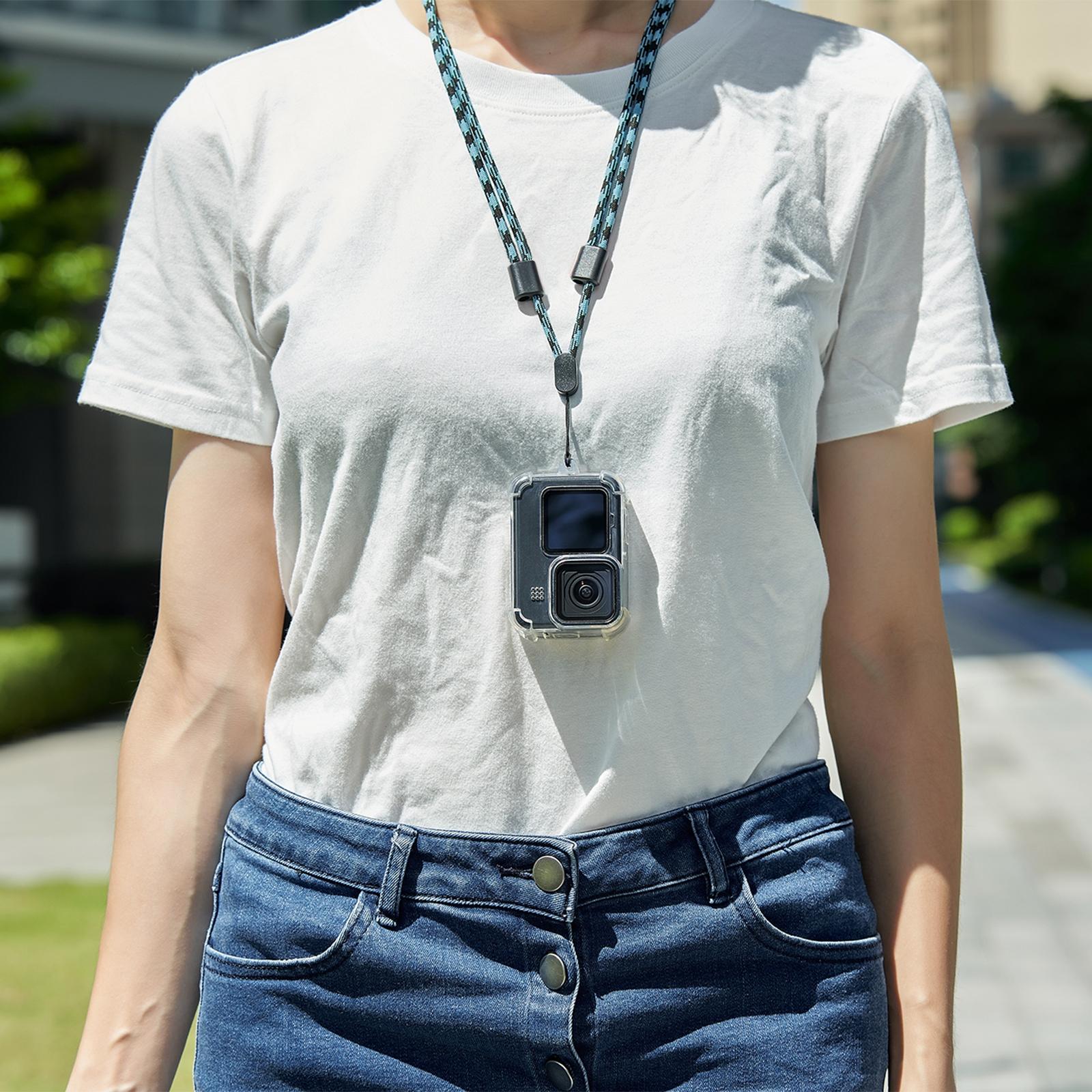 This TPU case with lens cap and neck strap is designed to provide comprehensive protection for your action camera. Made from high-quality TPU material, it offers durability, wear resistance, and a non-toxic, odorless finish. The case features airbags on the four corners to enhance shock absorption and safeguard the camera from falls and collisions. It includes a lens cover to protect the camera lens and a high-quality, adjustable neck strap that can also be wrapped around the arm or used as a hand strap. The design allows easy access to buttons and ports for convenient operation.