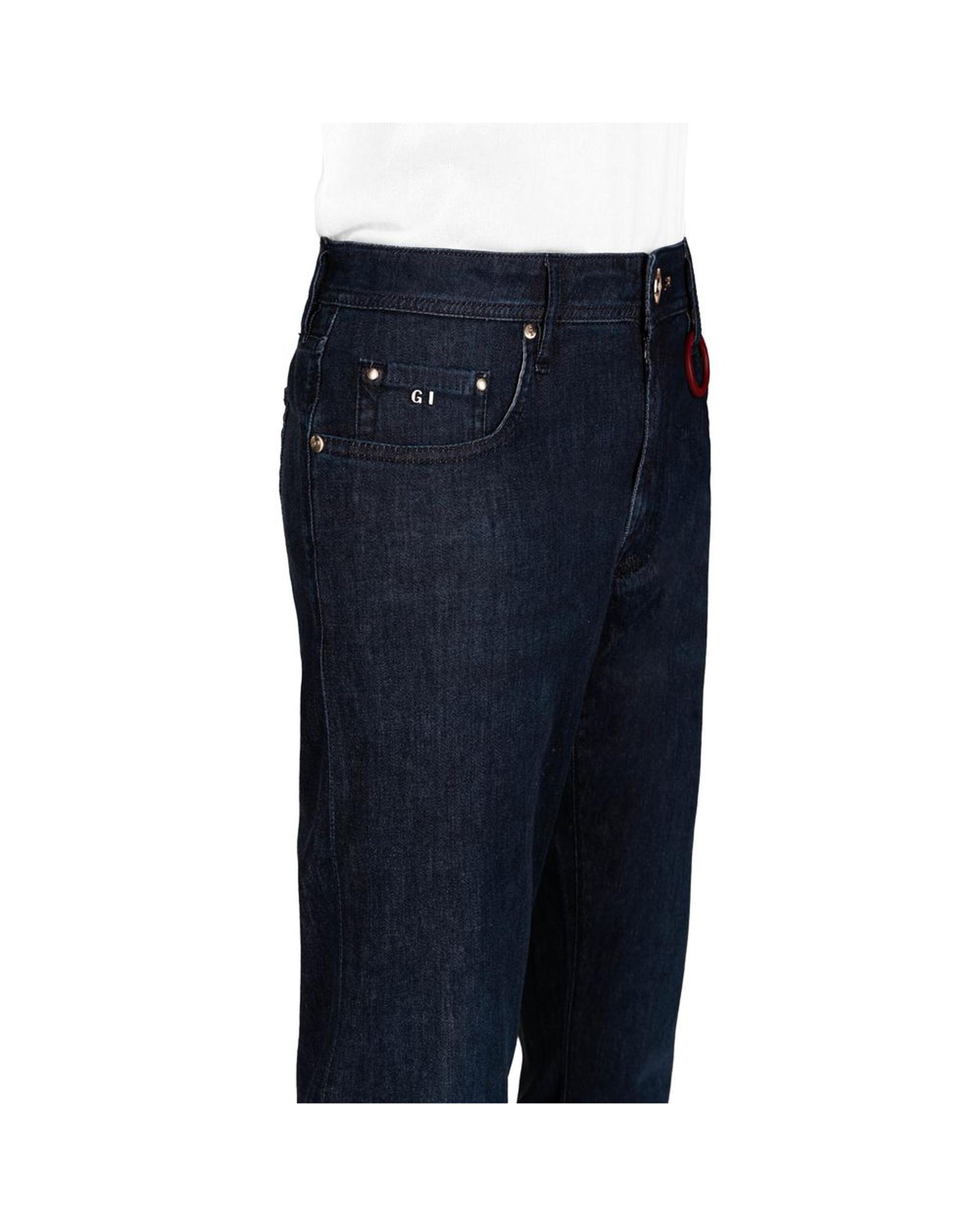 These men’s blue cotton jeans are designed for comfort and style, featuring a modern fit with a distinctive Michelangelo design. Made from a super light stretch cotton and viscose blend, they offer flexibility and ease of movement. The jeans include practical details such as a zip and button fastening, five pockets, and a smooth red leather patch on the back for added style.
