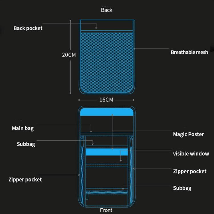 - Multiple compartments for organized storage of items such as phones, wallets, and documents