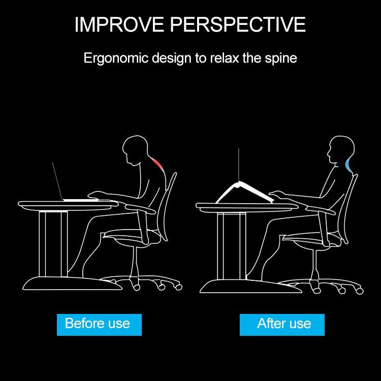 This triangle cooling bracket is designed for tablets, laptops, and desktops, offering a foldable and compact shape for easy portability. It features improved heat dissipation to enhance device performance and helps prevent cervical discomfort by adjusting the viewing angle.