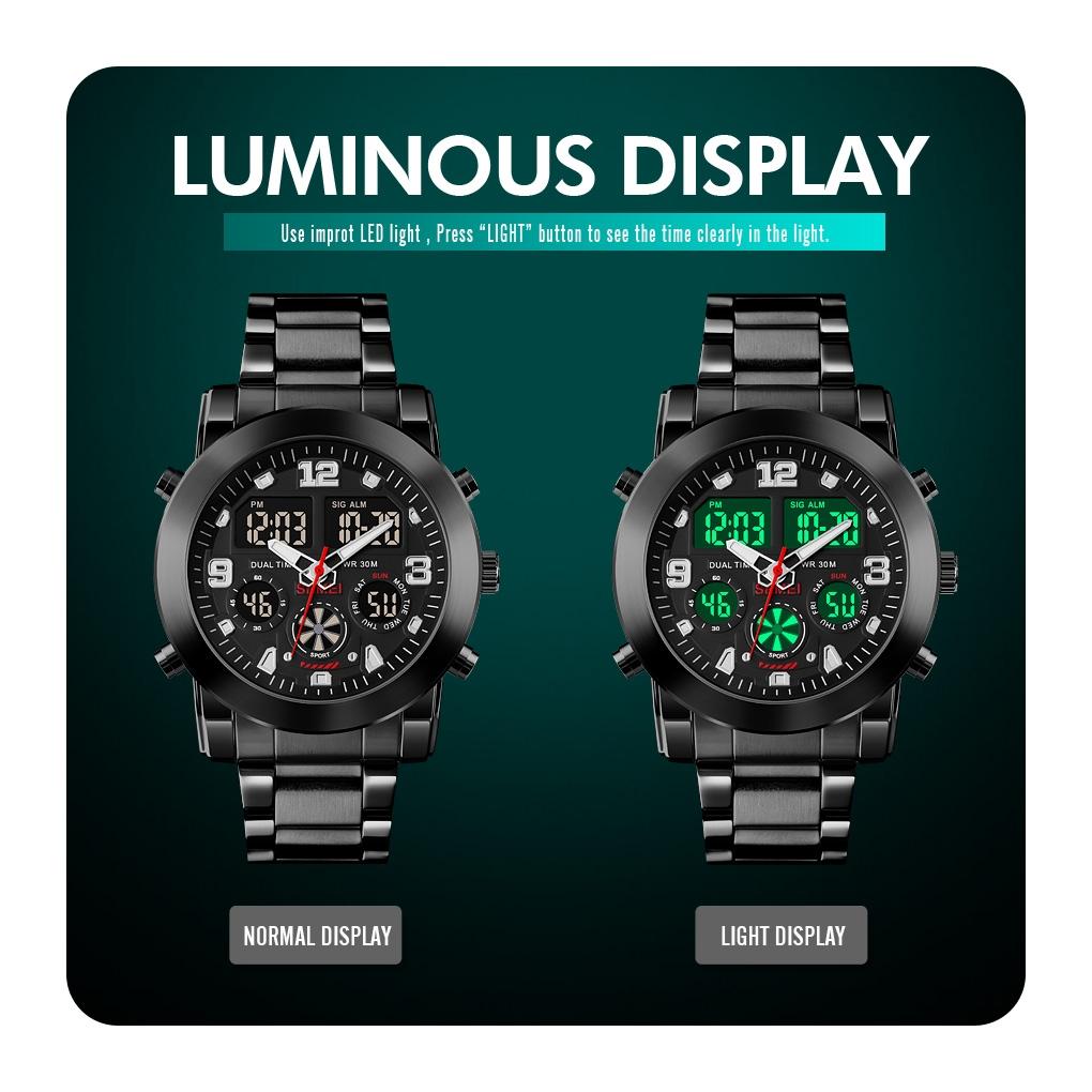 Triple Display Luminous Digital Watch – 1642 – Silver