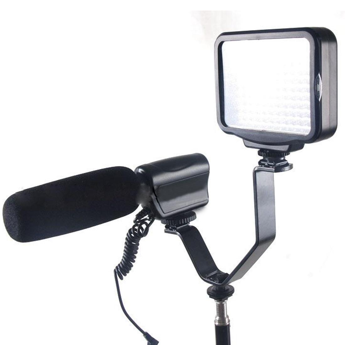 - Triple shoe V-bracket for mounting accessories on a camera’s accessory shoe