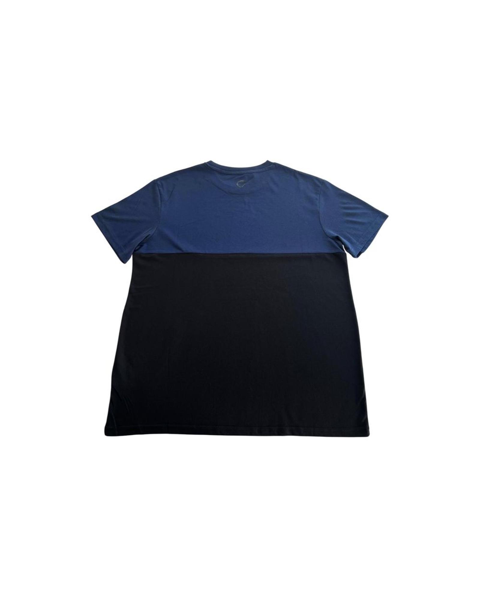 This men’s blue polyester T-shirt features a stylish two-tone design and a comfortable fit. It is suitable for casual wear and offers a modern, versatile look.