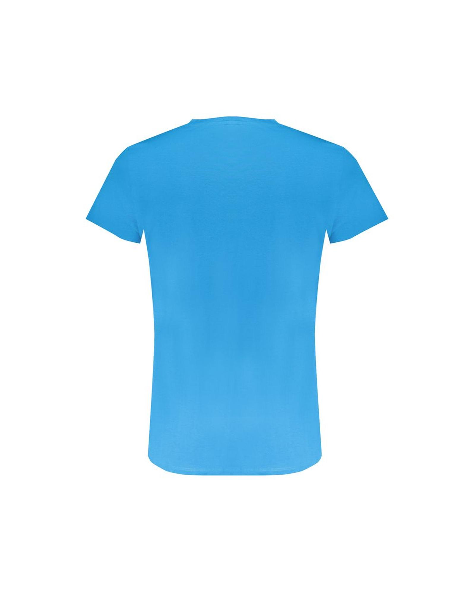 This men’s short-sleeved T-shirt features a classic crew neck design and a stylish printed logo on the front. Made from a comfortable blend of cotton and elastane, it offers a perfect fit and breathable wear. The shirt is available in a light blue color, suitable for casual occasions.