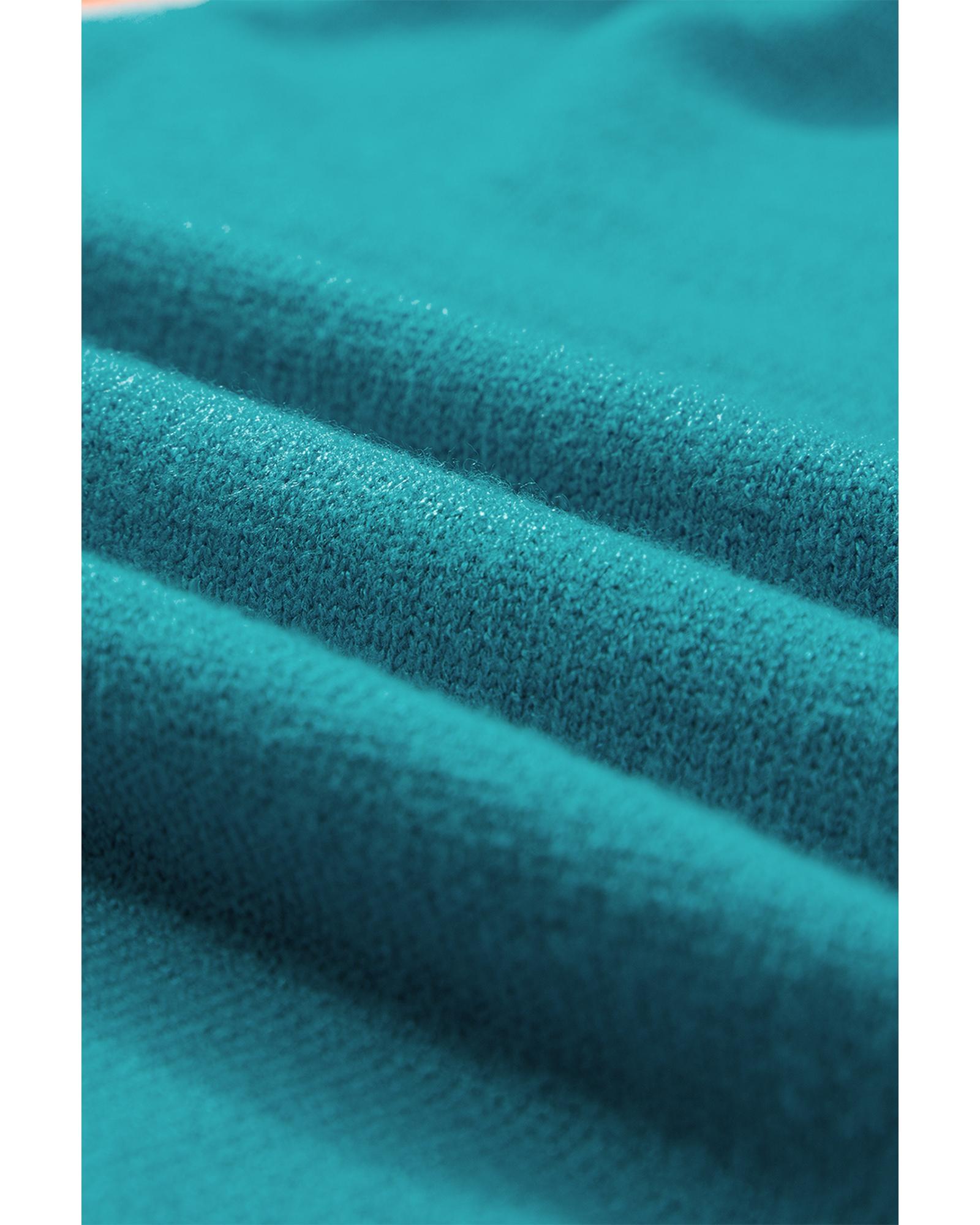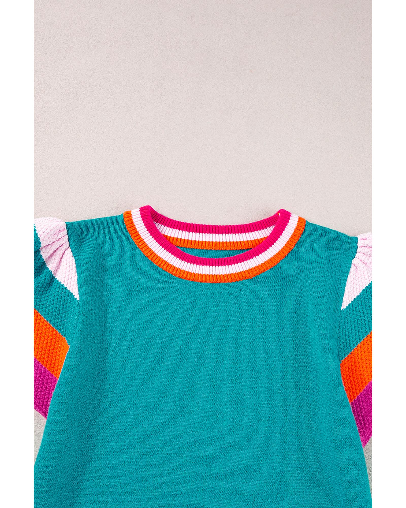 Turquoise Contrast Flutter Sleeves Knitted Sweater T Shirt – M