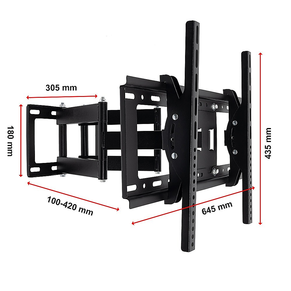 Features include a 180-degree horizontal swivel, ??80-degree swing, ??5-degree rotation, and 15-degree tilt adjustment. The adjustable arm extends from 110mm to 420mm, allowing you to position your TV at the optimal distance and angle for comfortable viewing from various locations.