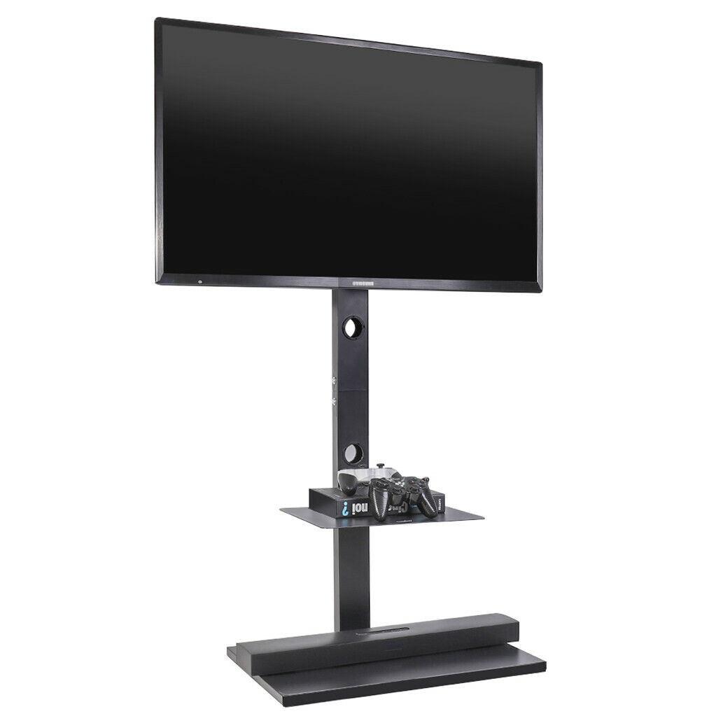 This TV stand base features an adjustable height and a swivel mount designed to fit most 32-65 inch flat-screen TVs, including LED, LCD, and Plasma models. It provides a versatile and secure solution for your home entertainment setup, allowing for optimal viewing angles and organized storage of media devices.