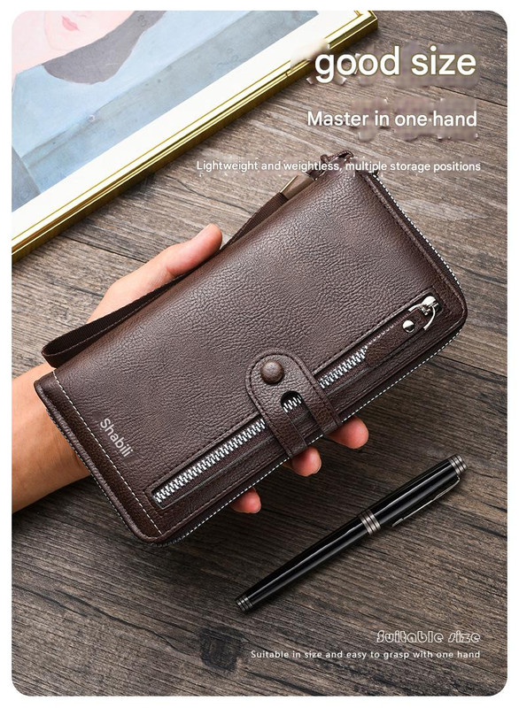 This high-capacity clutch wallet combines style and functionality, suitable for both men and women. Made from durable PU leather, it features multiple compartments and secure closures to organize your essentials efficiently. The design includes a detachable wrist strap for easy carrying and quick access to frequently used items, making it ideal for daily use or travel.
