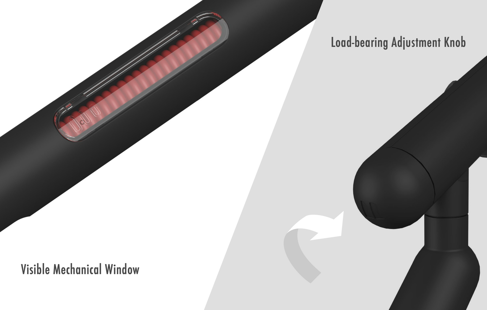This heavy-duty monitor arm features a unique design inspired by sci-fi crystals, combining aesthetic appeal with practical functionality. It offers versatile adjustability and compatibility, making it suitable for various workspace setups.