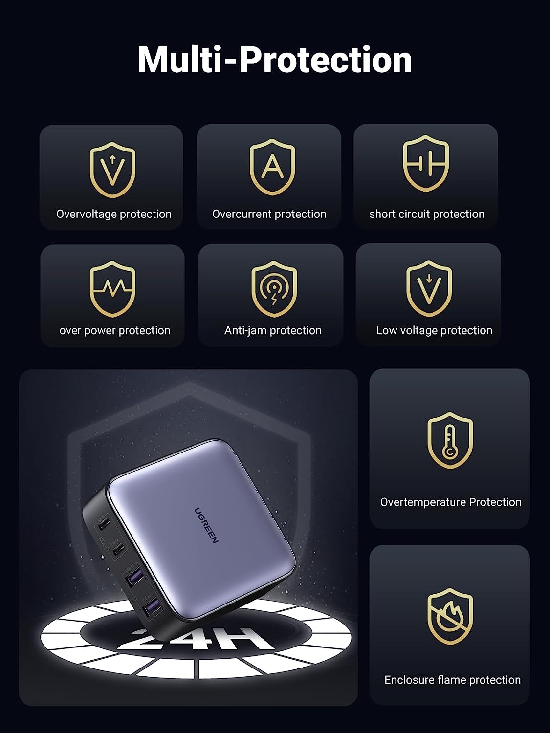 - Equipped with temperature sensors and an intelligent power management chip for safety