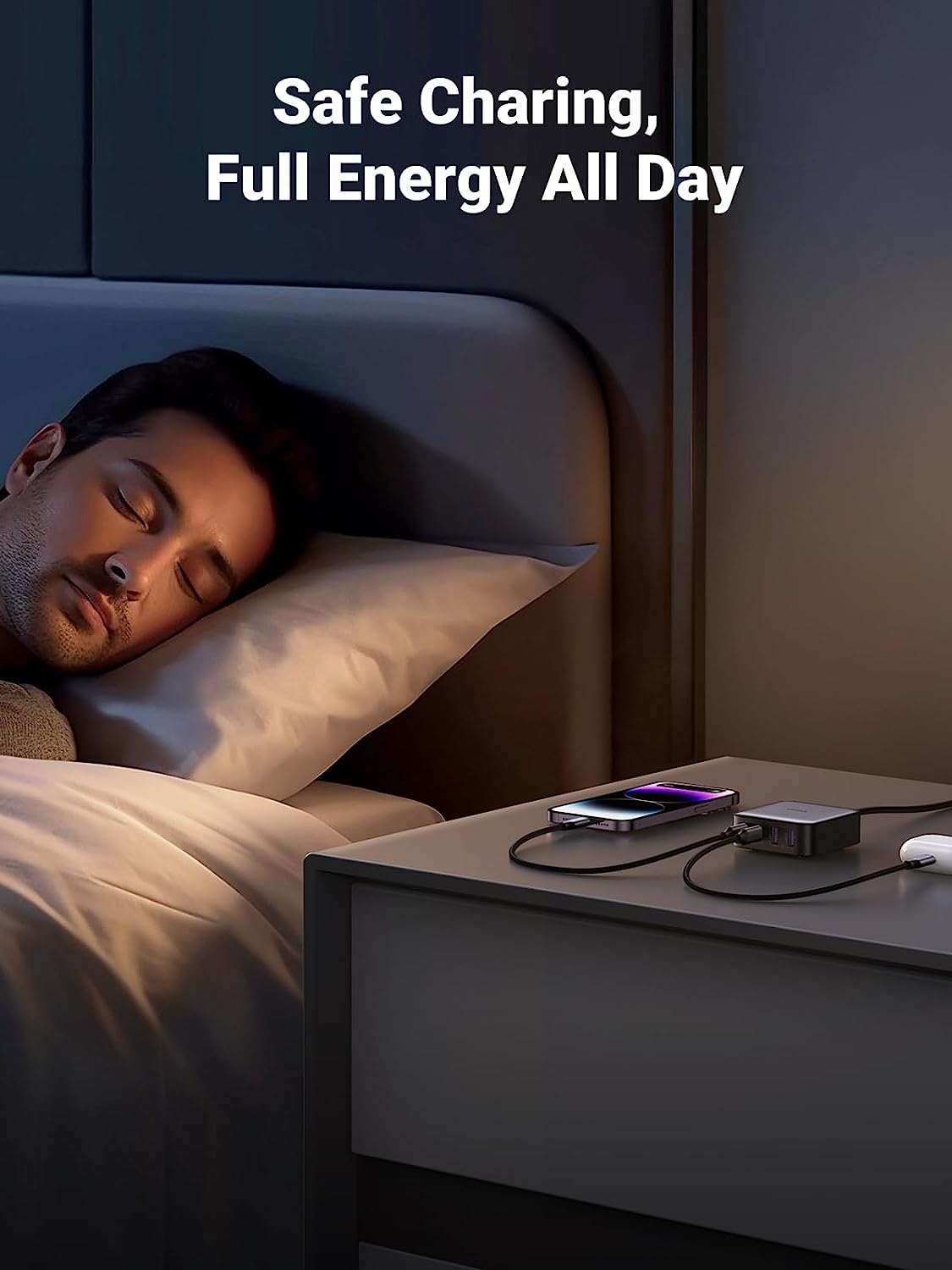 - Constructed with a heat dissipation structure and safety-rated shell for secure overnight charging