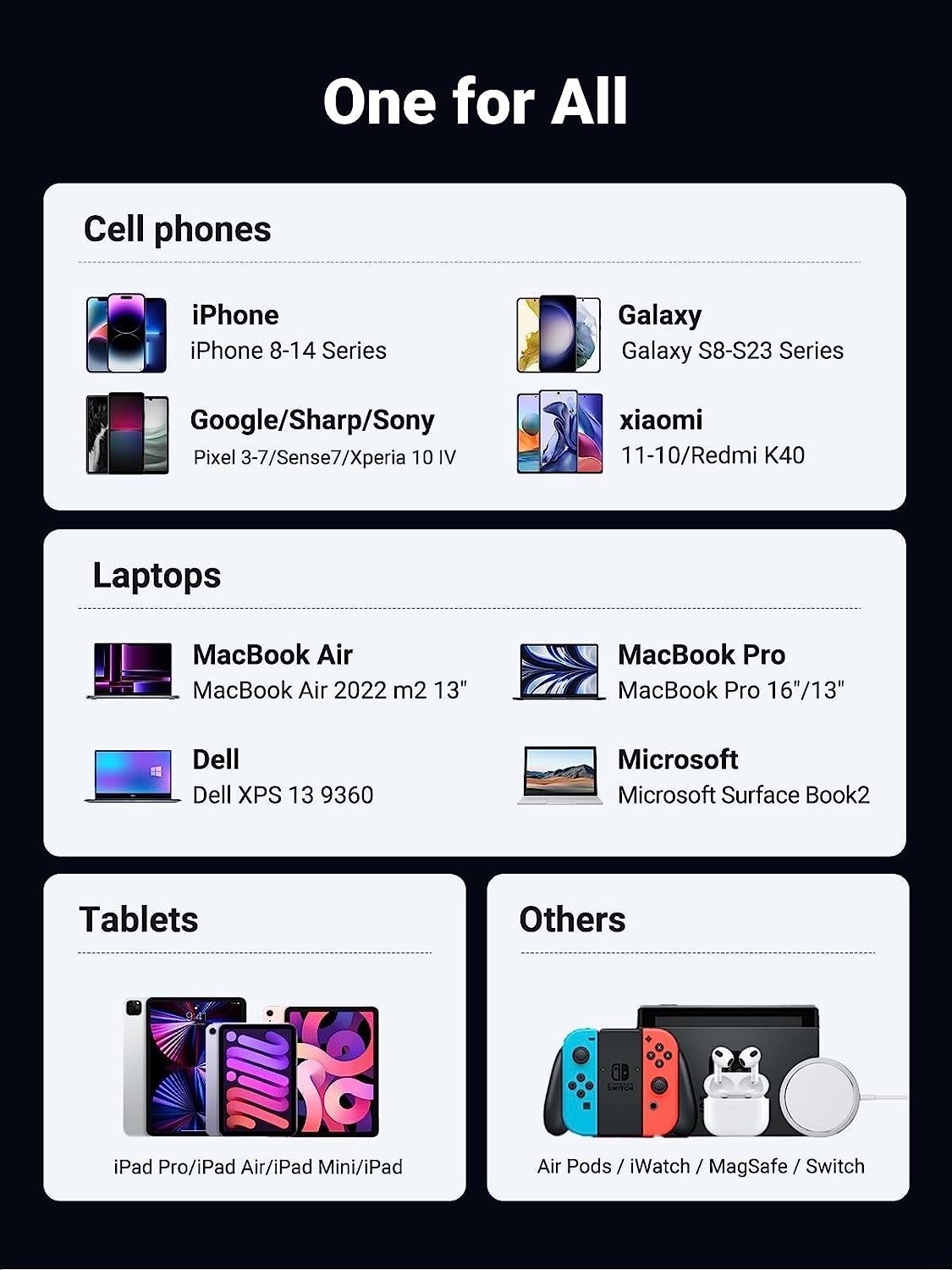 - Suitable for laptops, smartphones, tablets, and other electronic devices