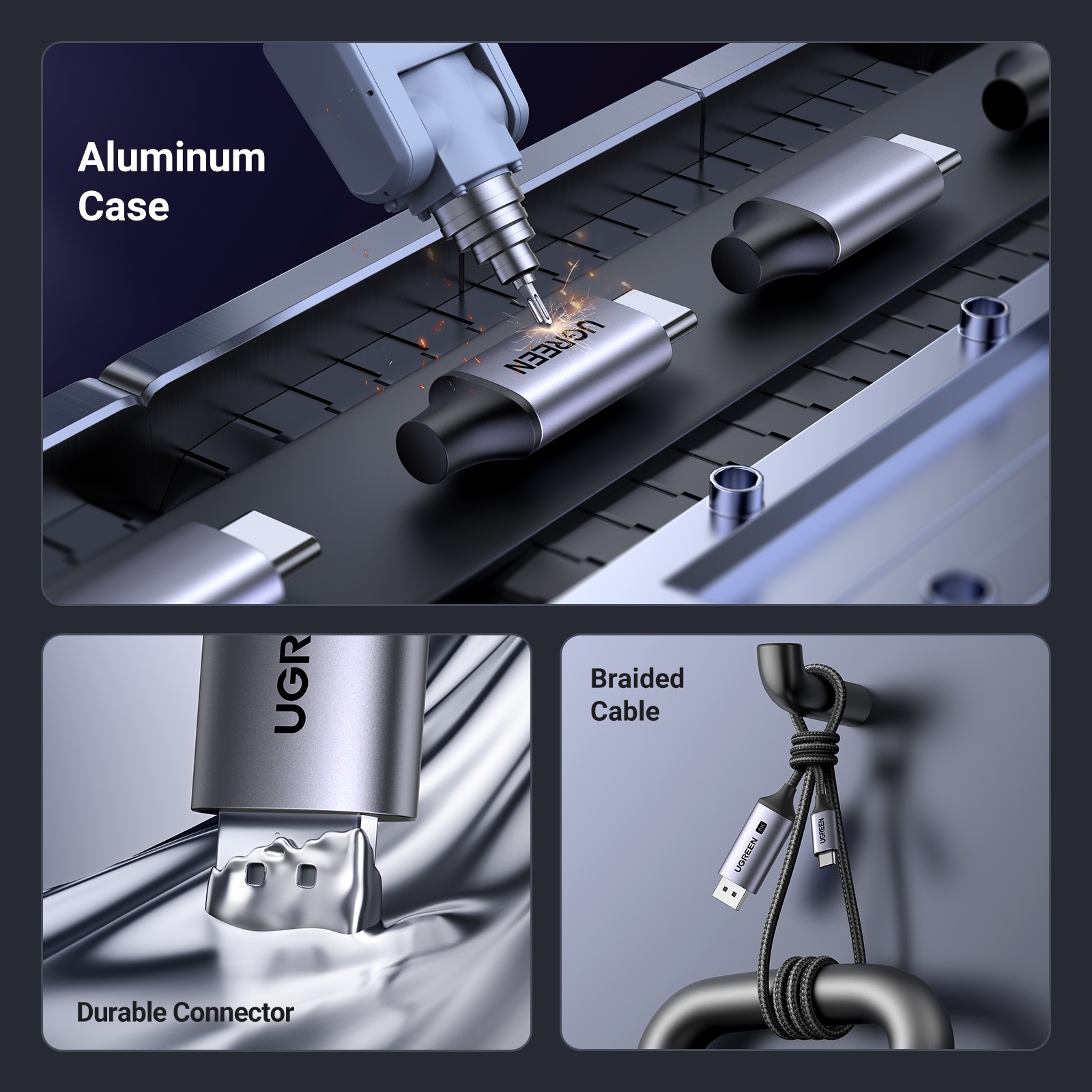 - Constructed with braided nylon for durability, a premium aluminum alloy shell for heat dissipation, and high-quality connectors for secure, high-speed data transfer