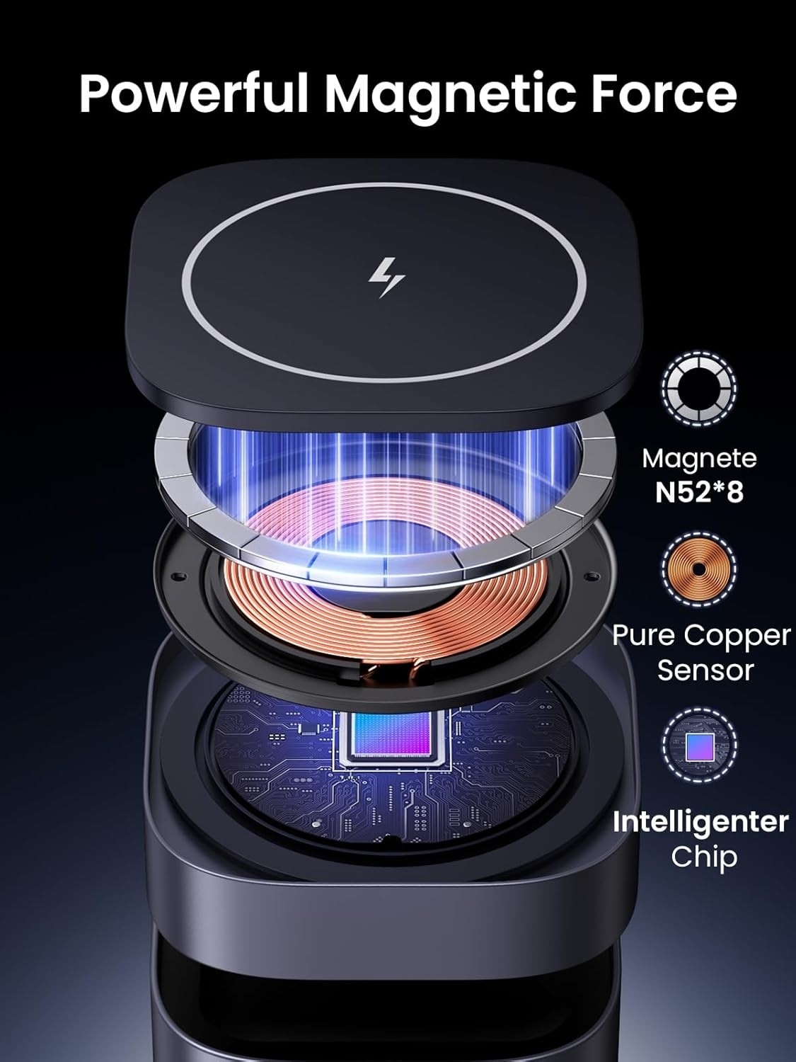 - Built-in magnetic ring for strong suction