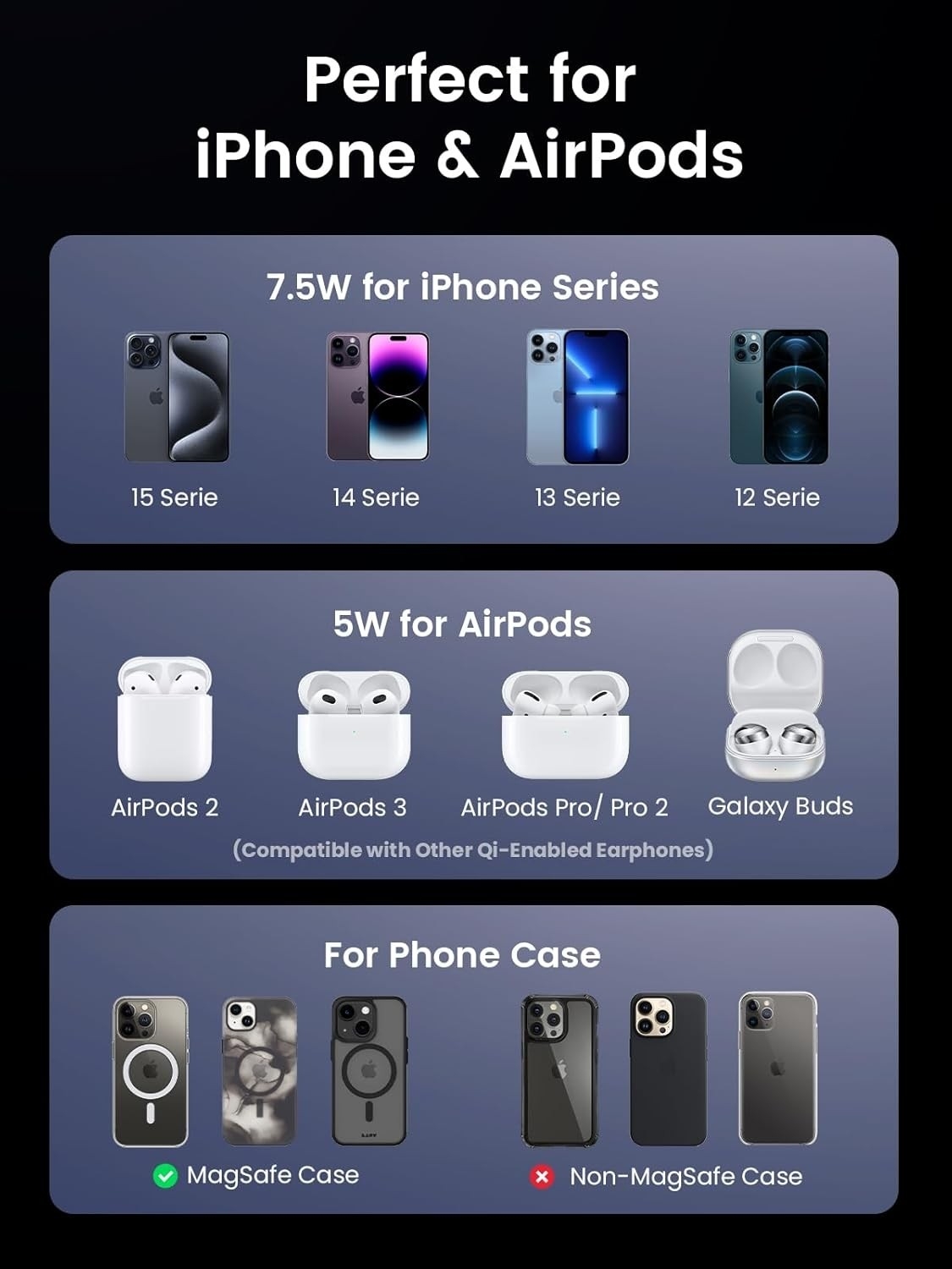 - Supports simultaneous charging of iPhone and AirPods