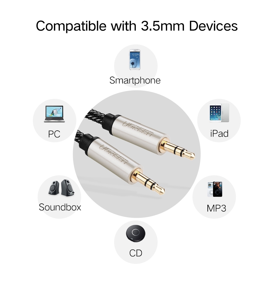 - Premium quality metal connectors with straight head stereo jack 3.5 mm male to male