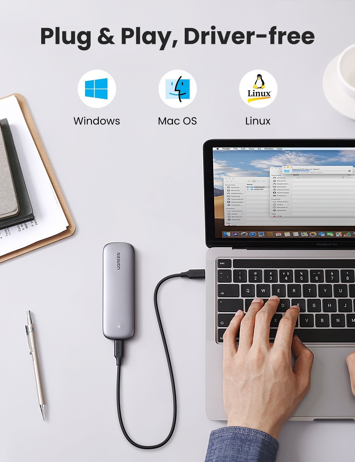 This enclosure is designed to convert an M-Key or M+B Key NVMe PCIe SSD into a portable external drive via USB 3.1. It supports high-speed data transfer, is easy to use without tools or drivers, and is suitable for data cloning, backups, reusing SSDs, and expanding storage capacity.