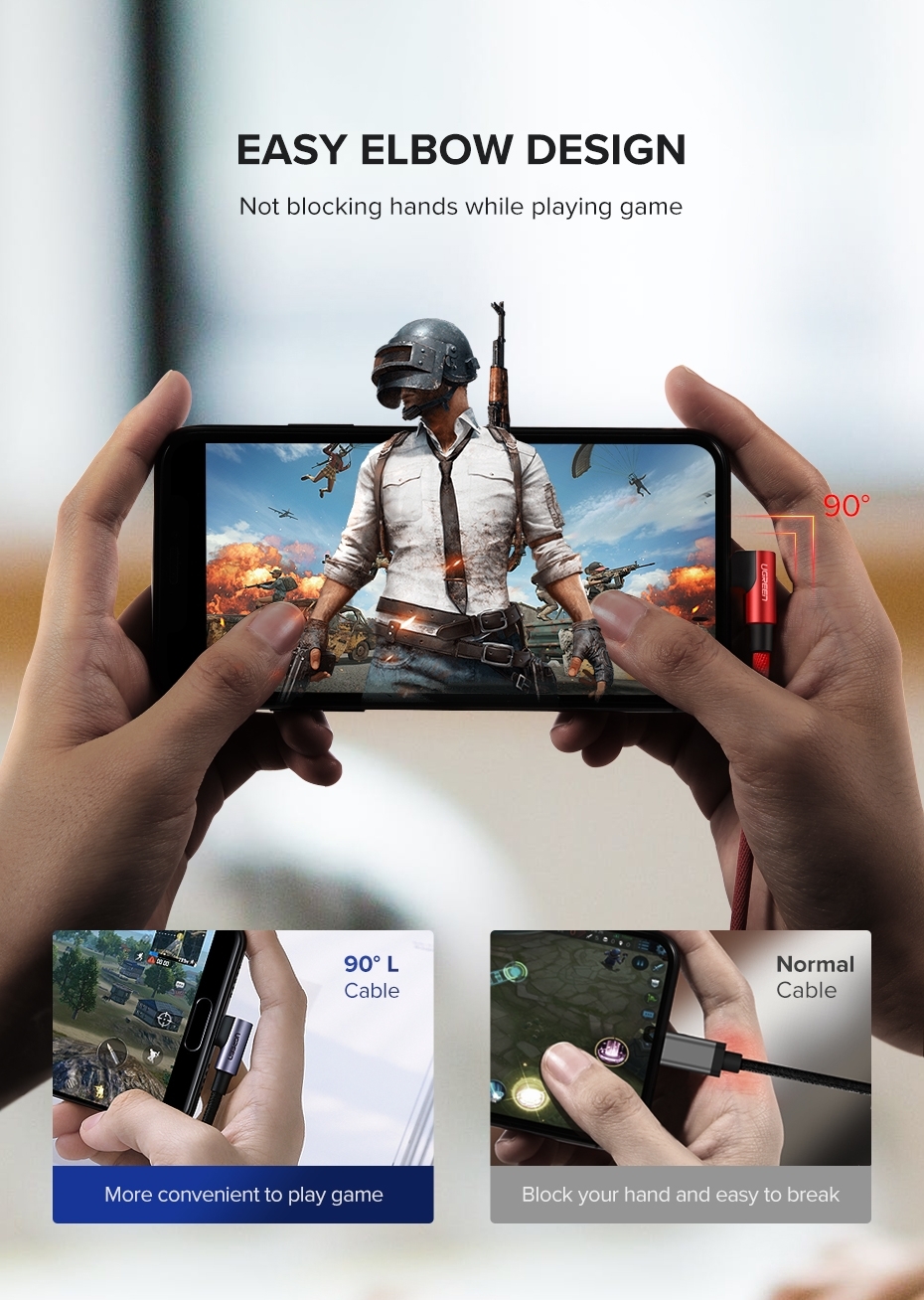 - Unique 90-degree angled connector for unhindered gaming and charging