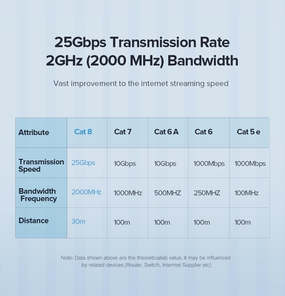 This Ethernet cable is designed to support high-speed network connections with a maximum speed of 40Gbps and a bandwidth of 2000MHz. It is suitable for various online activities including browsing, streaming, gaming, and file sharing, providing a stable and efficient network experience.