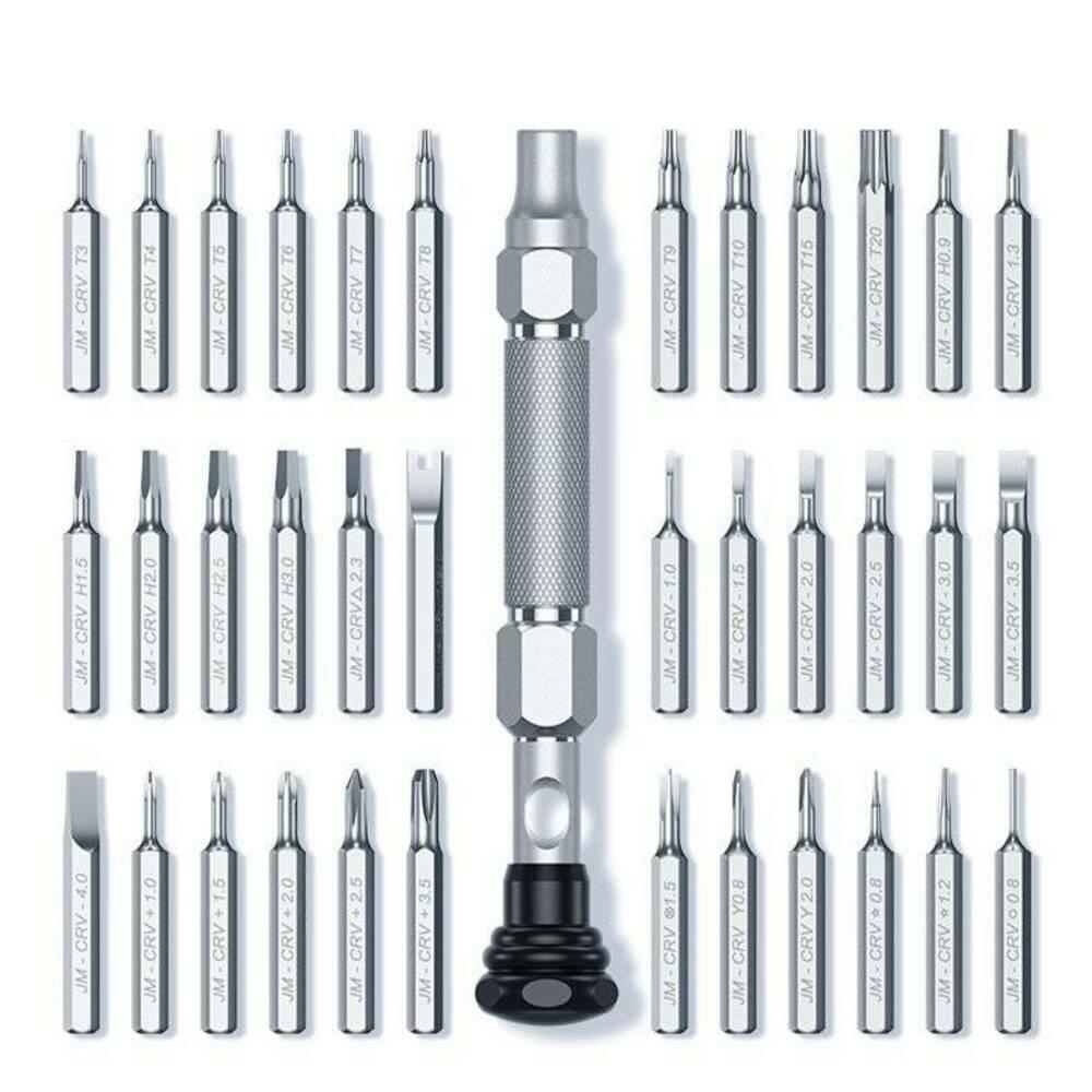This 38-in-1 aluminum alloy screwdriver set is designed for professional repairs of electronic devices such as phones, tablets, and laptops. It is suitable for tasks requiring precision, including watchmaking and jewelry repairs.
