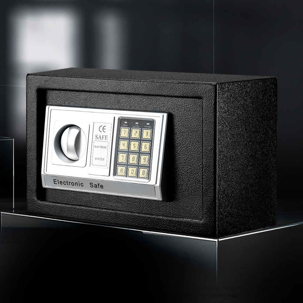 This security safe box offers a reliable and secure storage solution for your valuables at home or in the office. Constructed with a solid steel frame and a durable powder coating, it provides enhanced protection. The safe features a digital keypad for easy access, complemented by an emergency key, and includes an automatic alarm system for added security. Its versatile design allows for both freestanding placement and wall mounting, making it suitable for various environments.