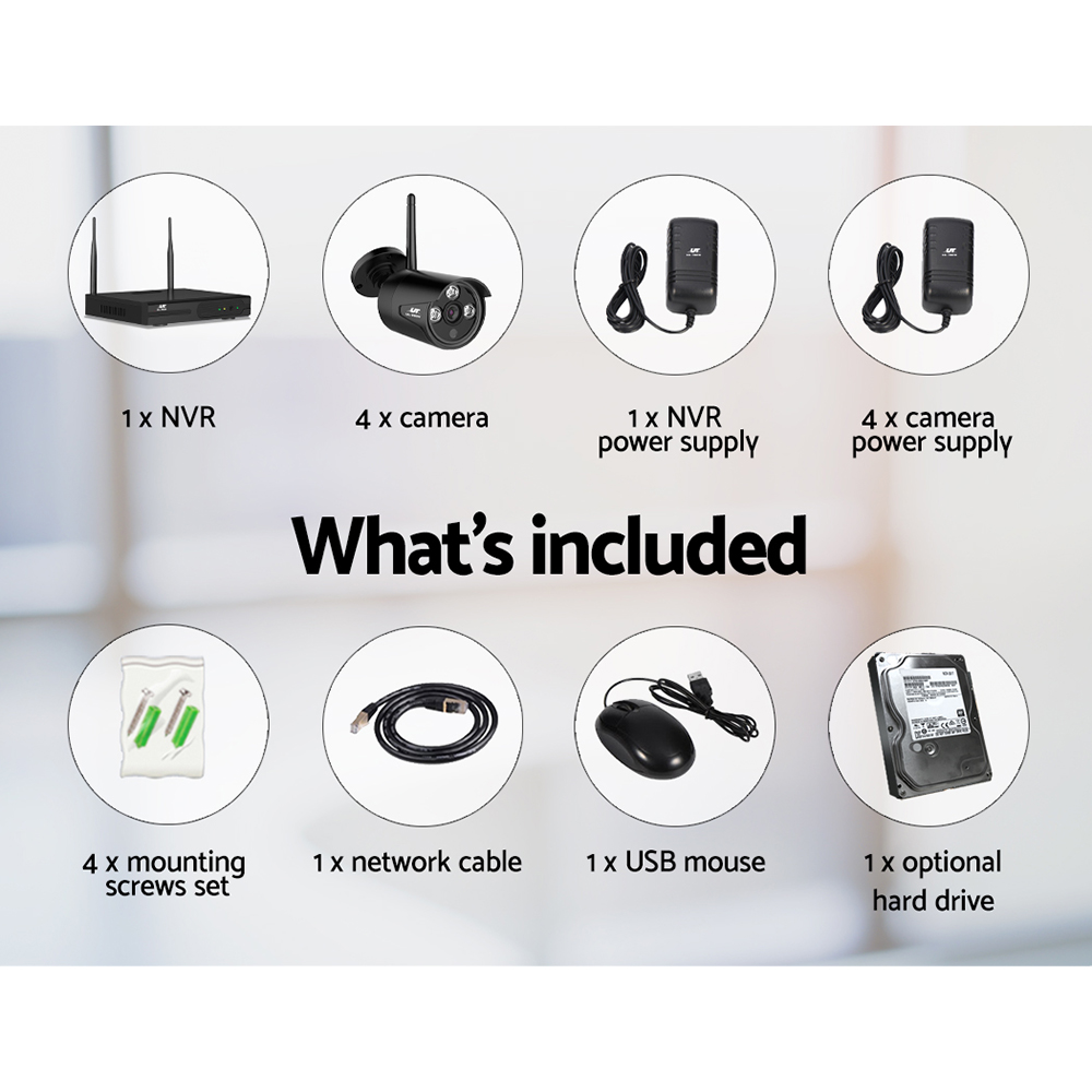 UL-tech Wireless CCTV Security System 8CH NVR 3MP 4 Bullet Cameras 1TB
