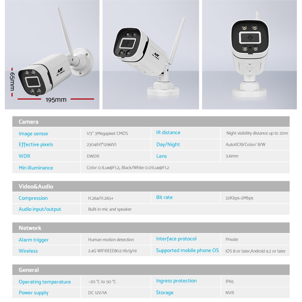 UL-tech Wireless CCTV Security System 8CH NVR 3MP 8 Square Cameras 2TB