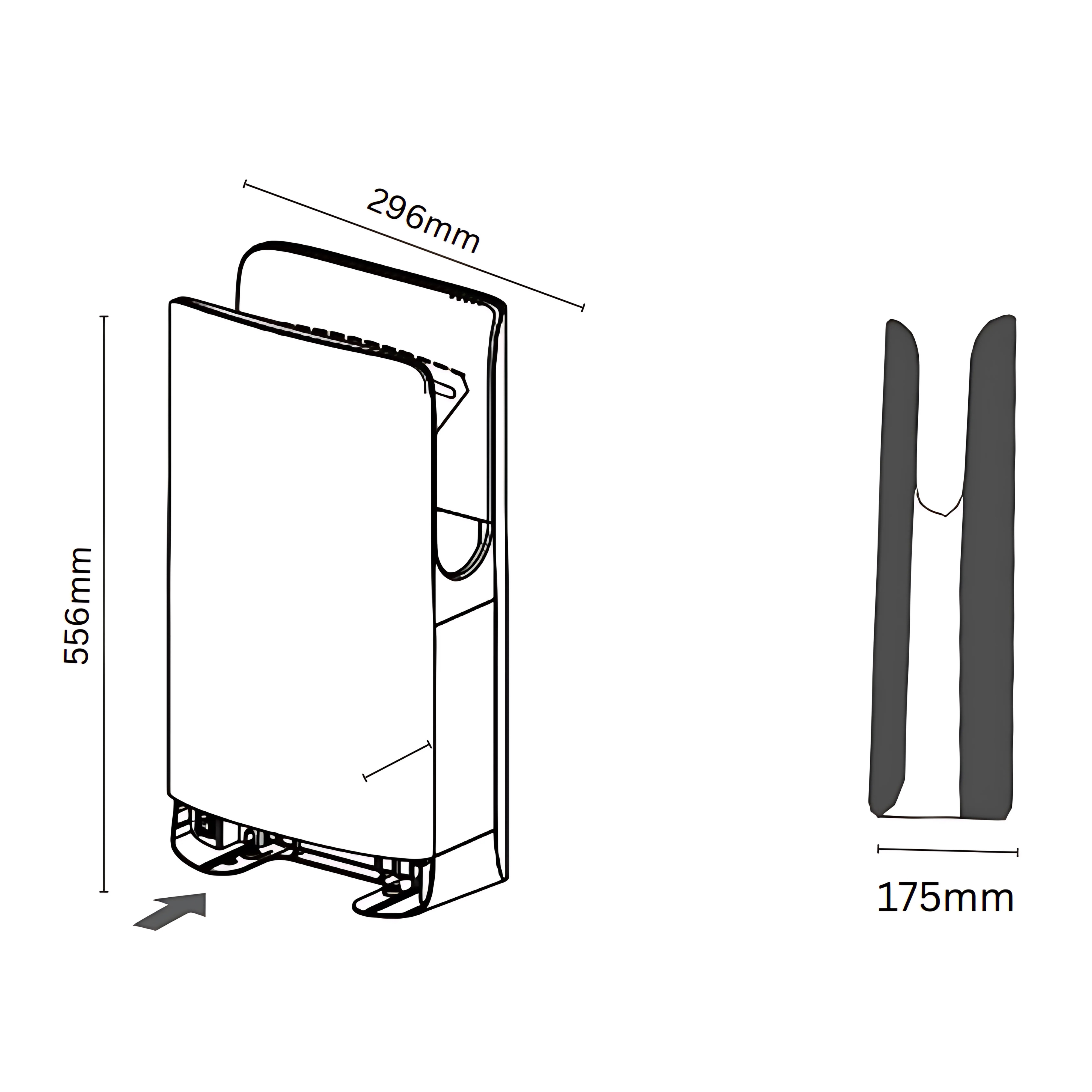 This ultra-compact jet hand dryer combines efficiency, reliability, and modern design to provide a hygienic and eco-friendly drying solution for high-traffic areas. Its sleek appearance enhances any environment while offering quick and effective hand drying with minimal noise and energy consumption.