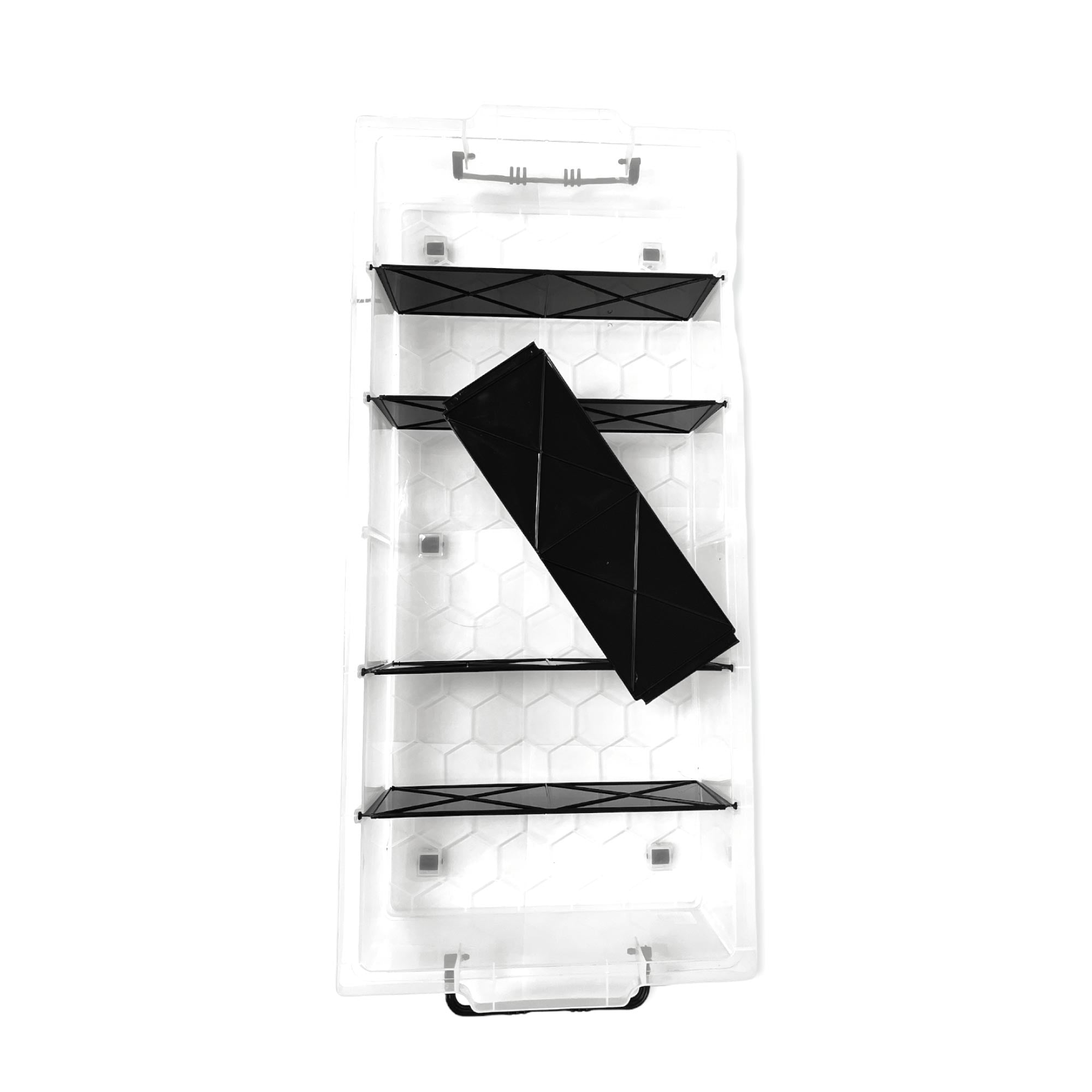 This under bed storage unit with wheels offers an efficient solution for organizing and hiding clutter. It features a spacious 27L capacity and can be divided into up to six separate compartments, making it versatile for various storage needs. Its compact design allows it to be easily stored under most beds or in wardrobes, helping to maximize space utilization.